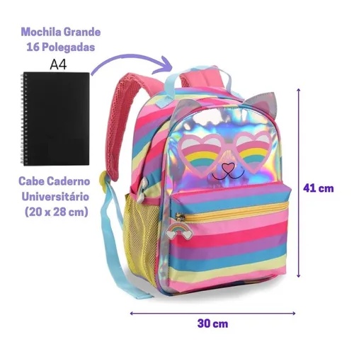 Mochila Bolsa De Costa Escolar Impermeável Gatinho Menina