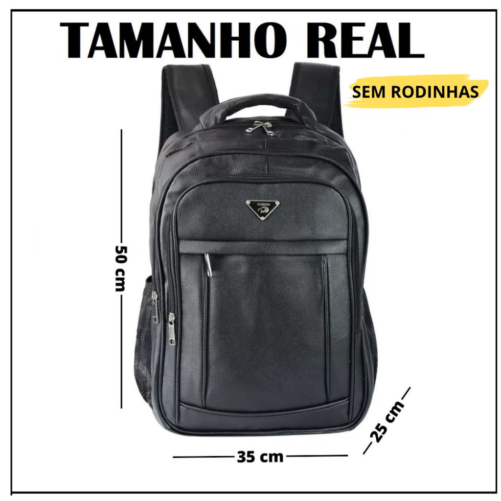 Mochila Bolsa De Rodinhas Couro Unissex Resistente Impermeável Trabalho Faculdade