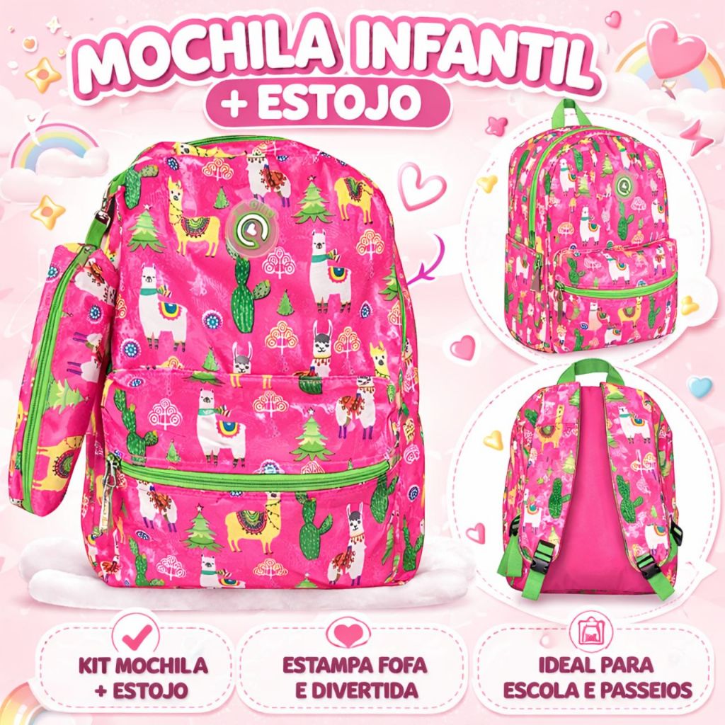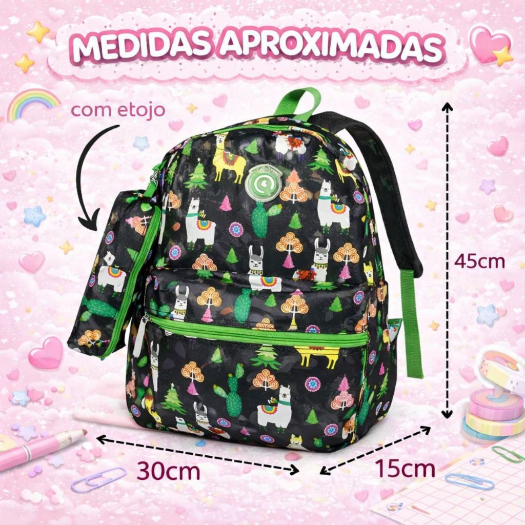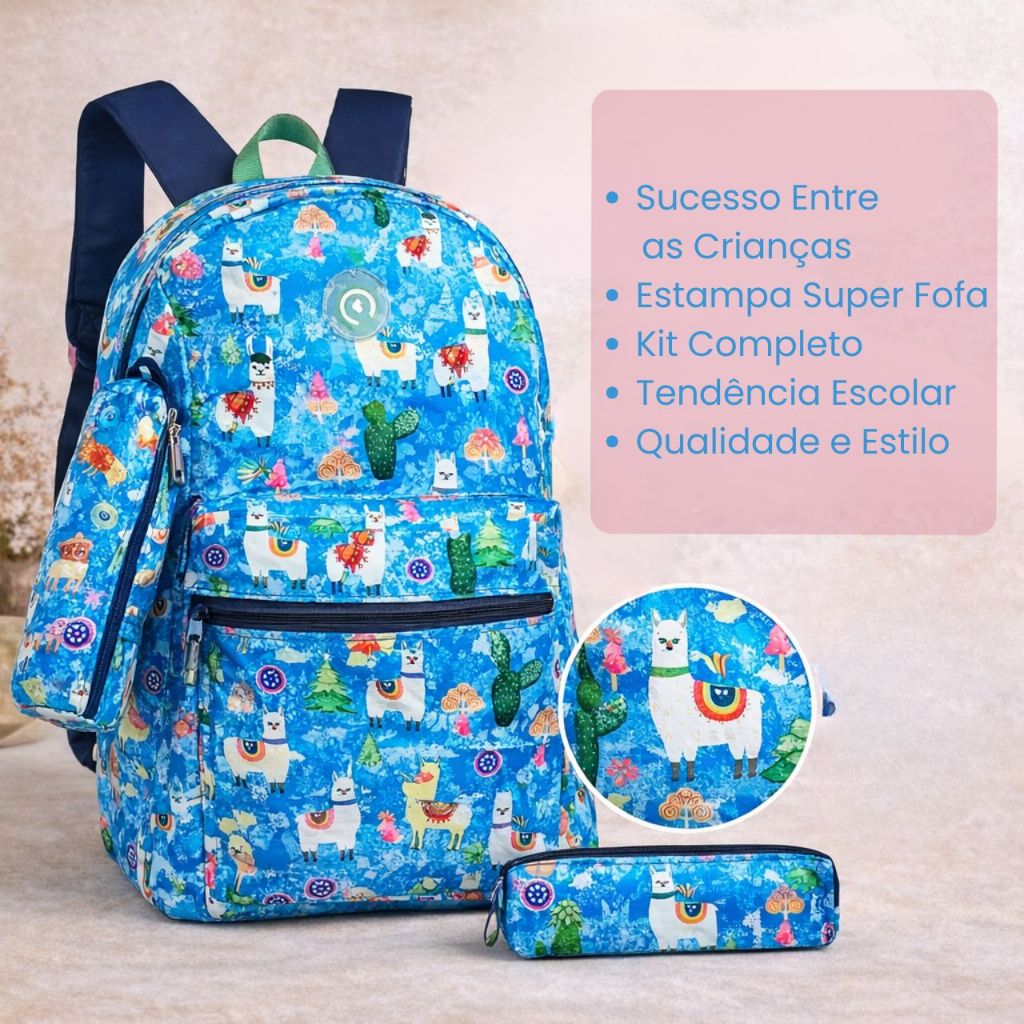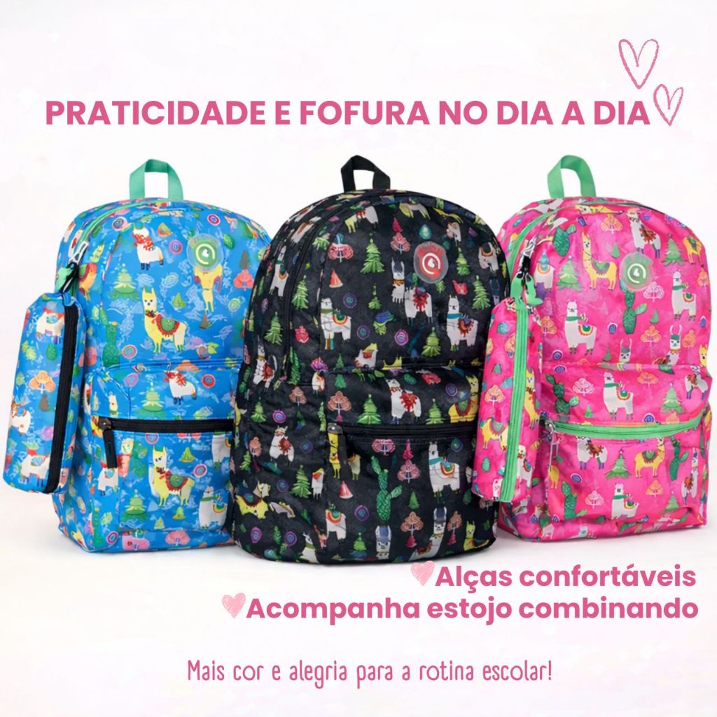 Mochila Estampada com Estojo volta às aulas Bolsa Escolar Faculdade Trabalho e Viagem