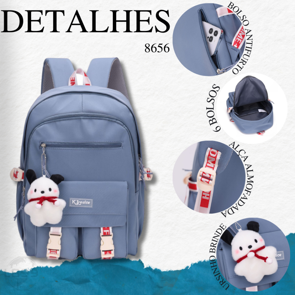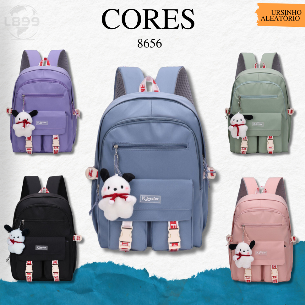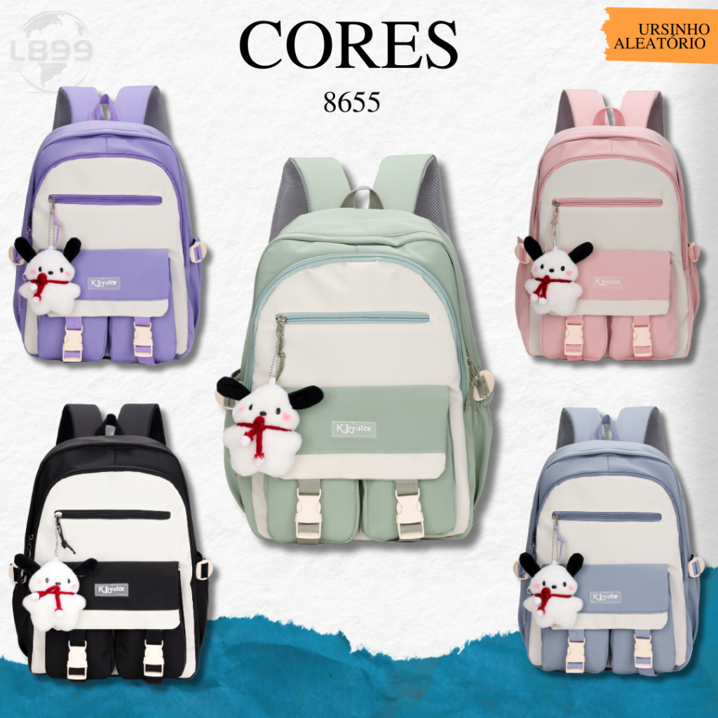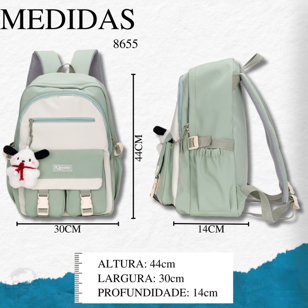 Mochila Unissex c/ Ursinho Escolar Estudante Moda Coreana/Japonesa Impermeável Bolso Secreto