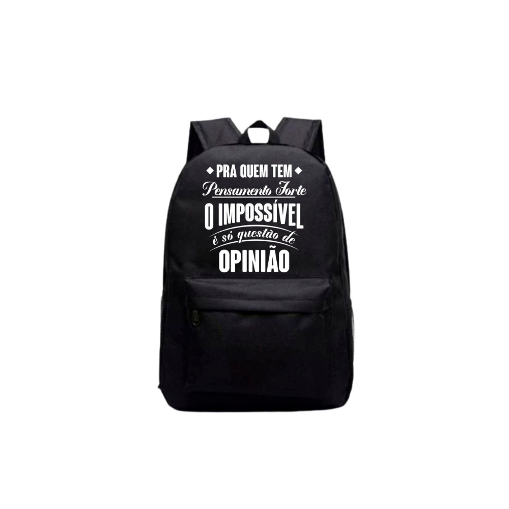 Mochila Bolsa Grande Escolar Unissex Faculdade Trabalho Treino Resistente Nylon Preta Frases