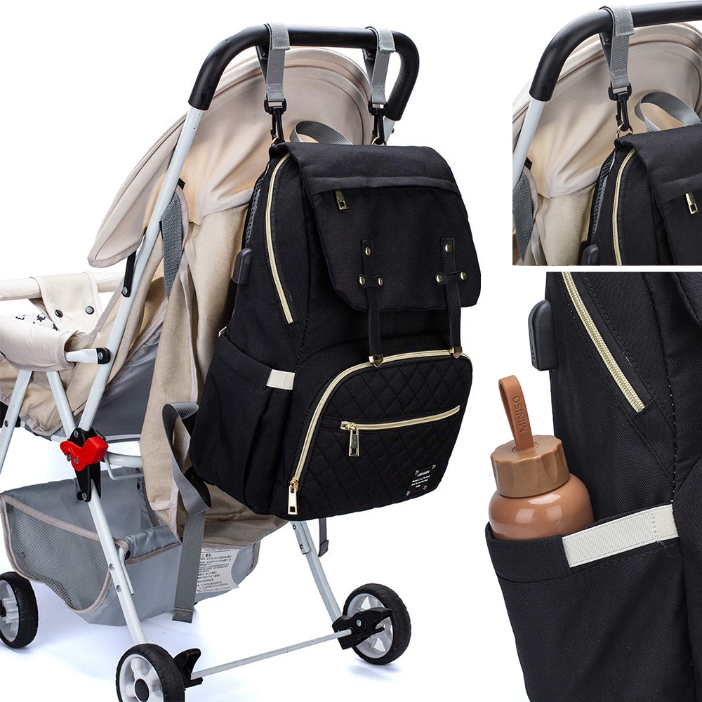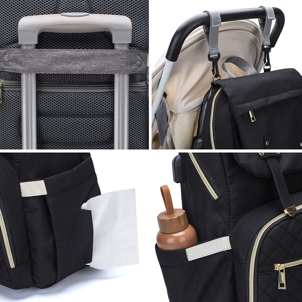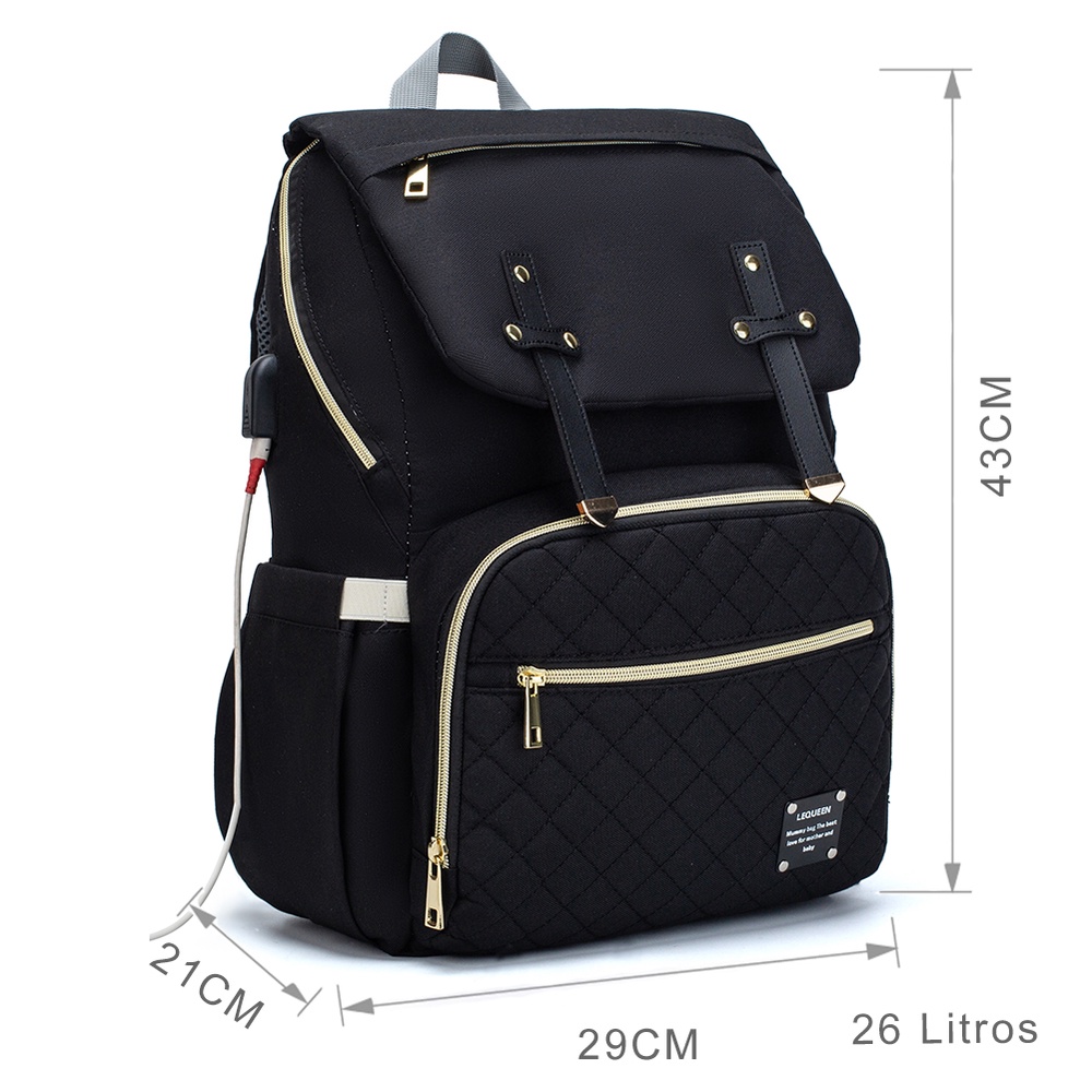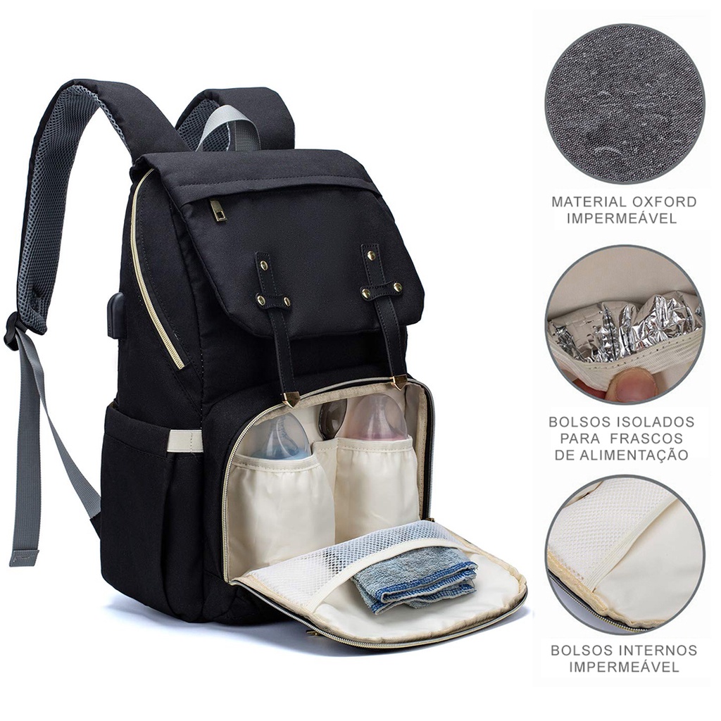 Mochila Bolsa Maternidade Lequeen Bebê Com Bolso Térmico Preta