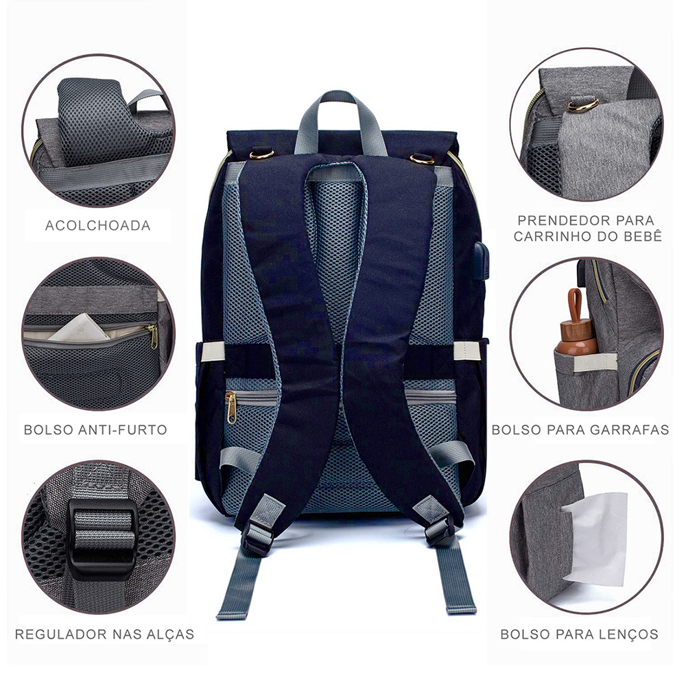 Mochila Bolsa Maternidade Lequeen Bebê Menino Menina Com Bolso Térmico