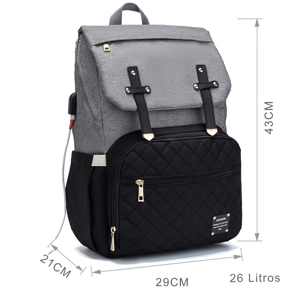 Mochila Bolsa Maternidade Menino Menina Lequeen Impermeável Com Bolso Térmico