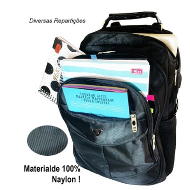 Mochila Bolsa Reforçada Cabo de Aço Notebook Escolar Ótima Trabalho Faculdade