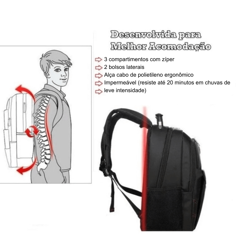 Mochila Bolsa Reforçada Notebook Escolar Faculdade Ótima Cor Preta