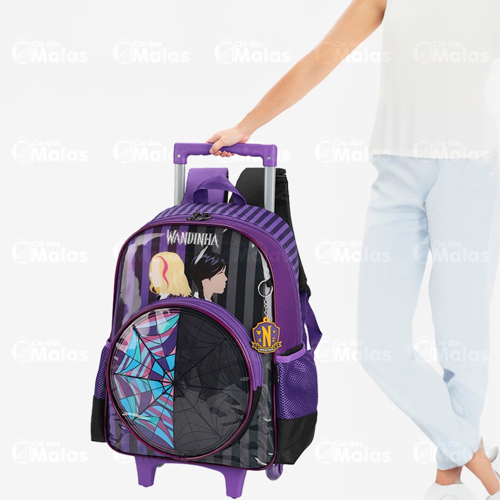 Mochila Carrinho Escolar Com Alça Família Addams Wandinha