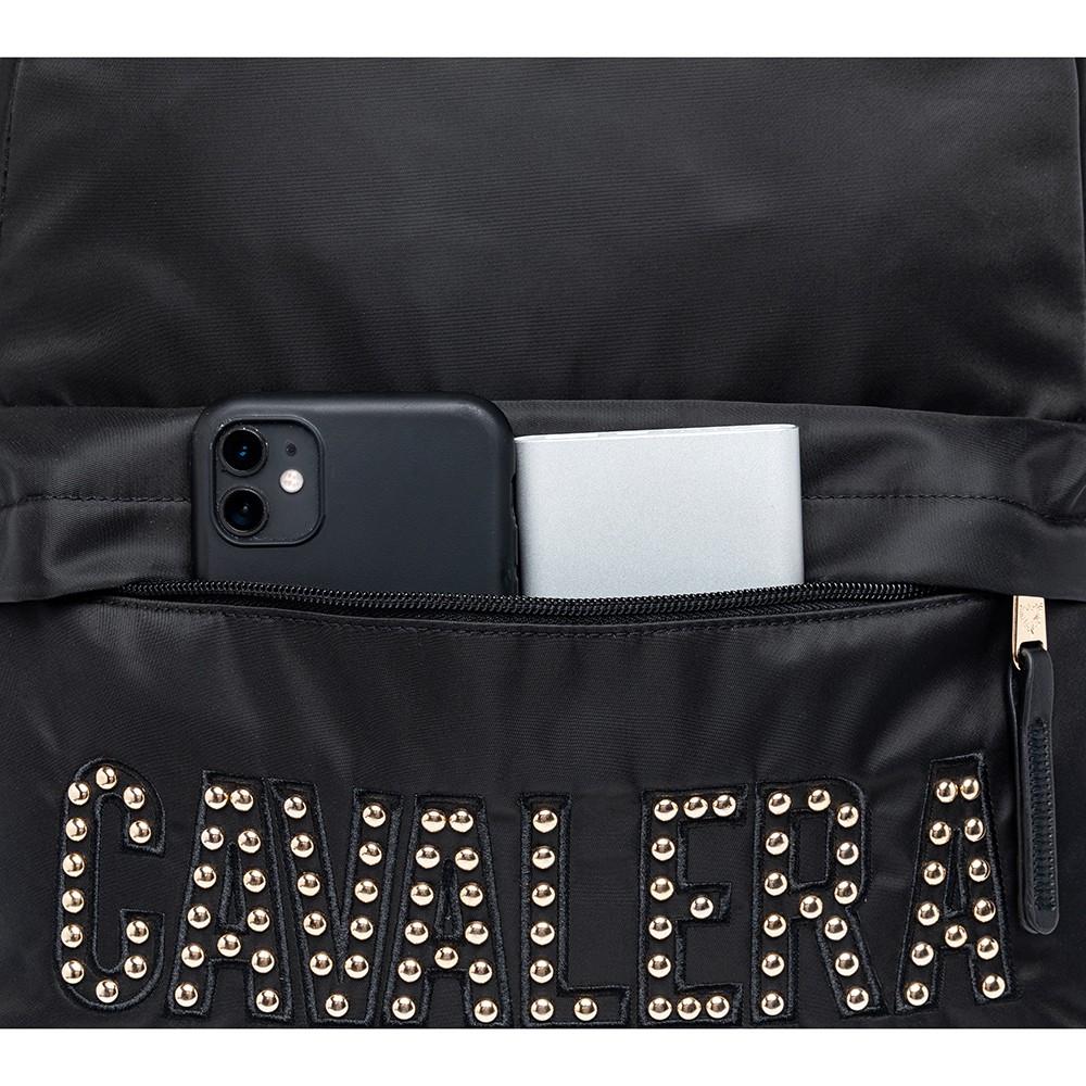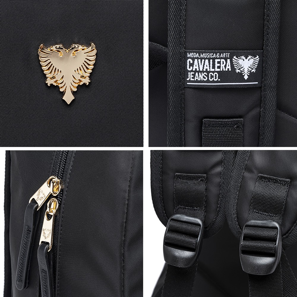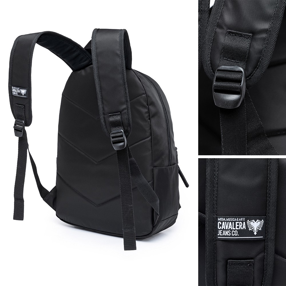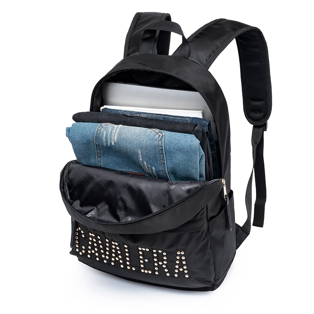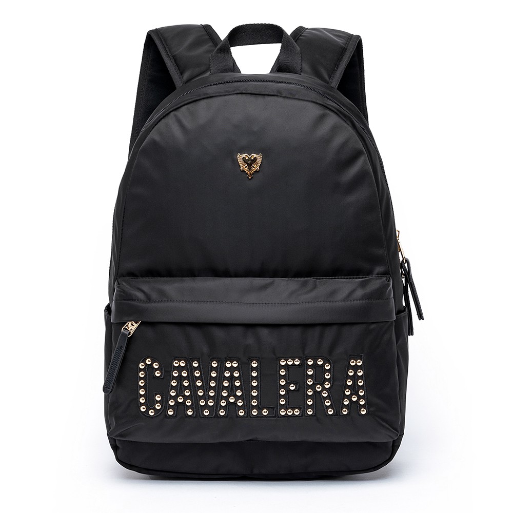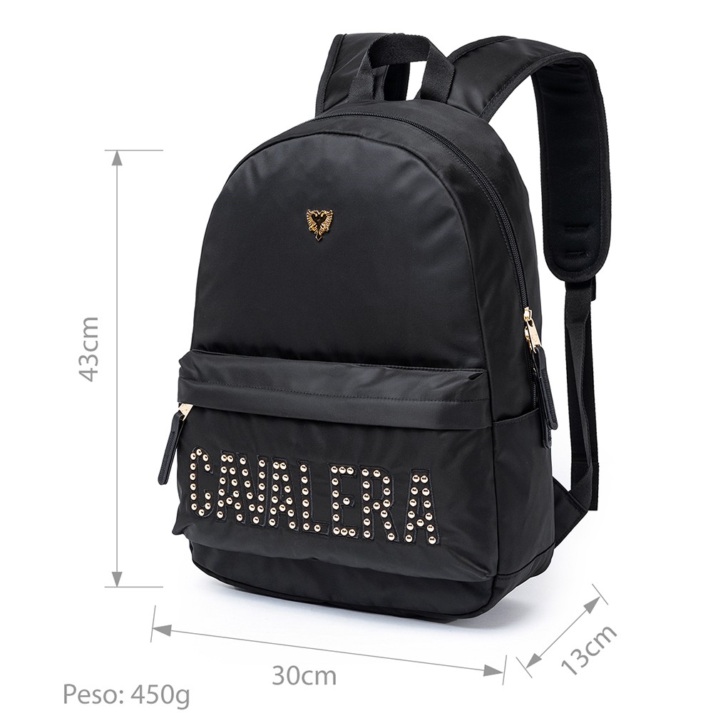 Mochila Cavalera Feminina Preta Dourada Acetinada 17L Notebook 15"