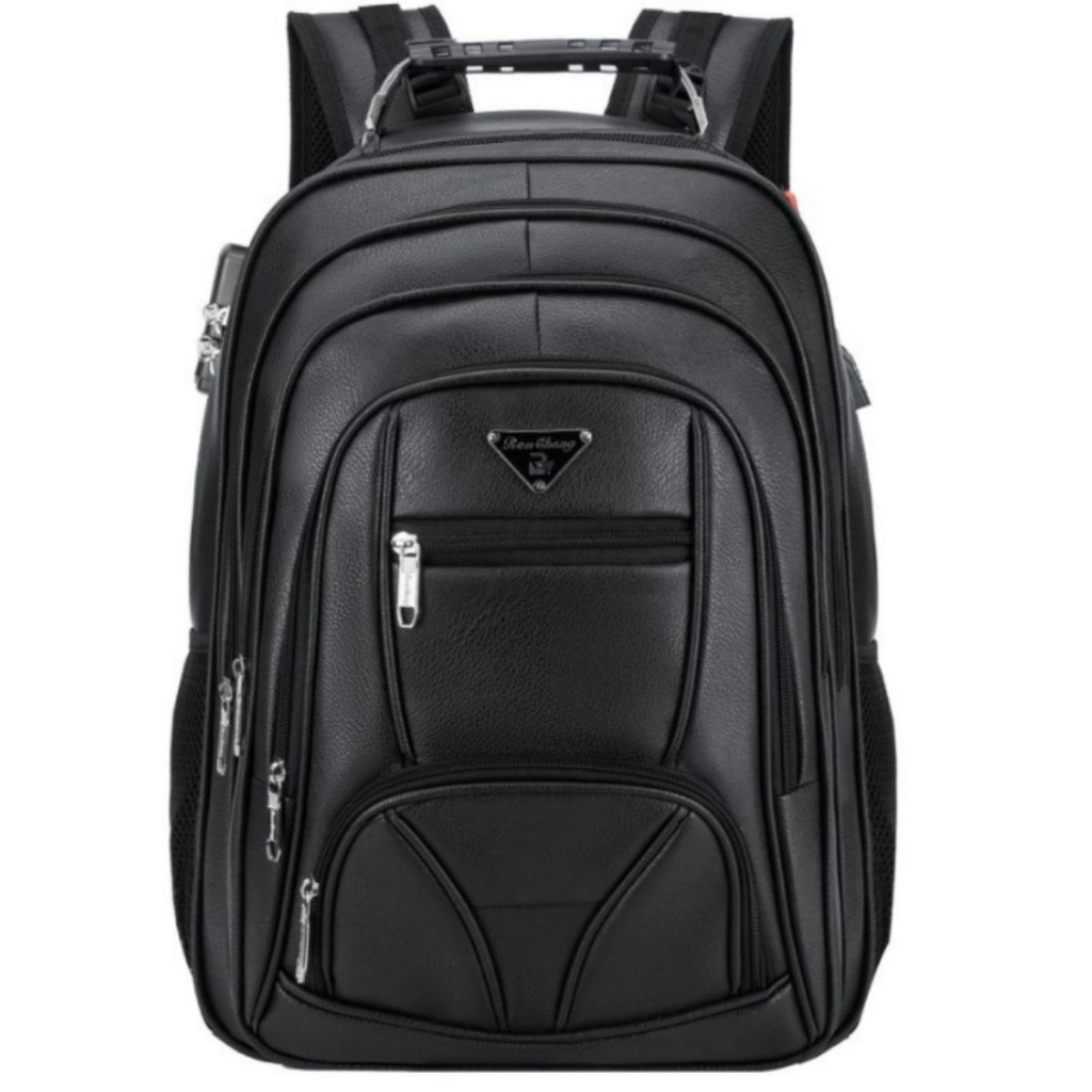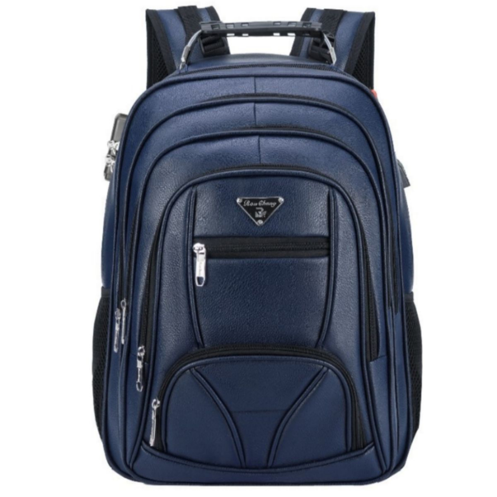 Mochila Couro PU Gigante Executiva Para Notebook Trabalho Faculdade Reforçada Antifurto Senha Cabo De Aço USB