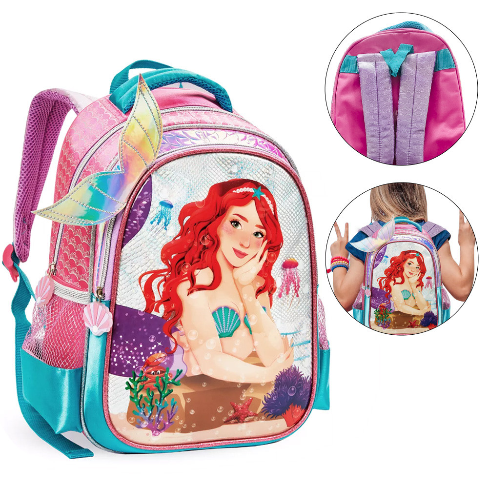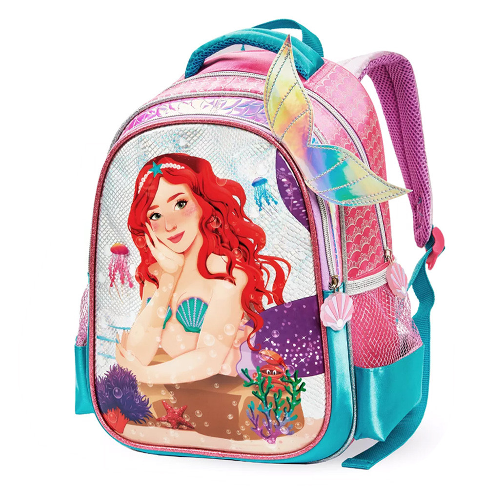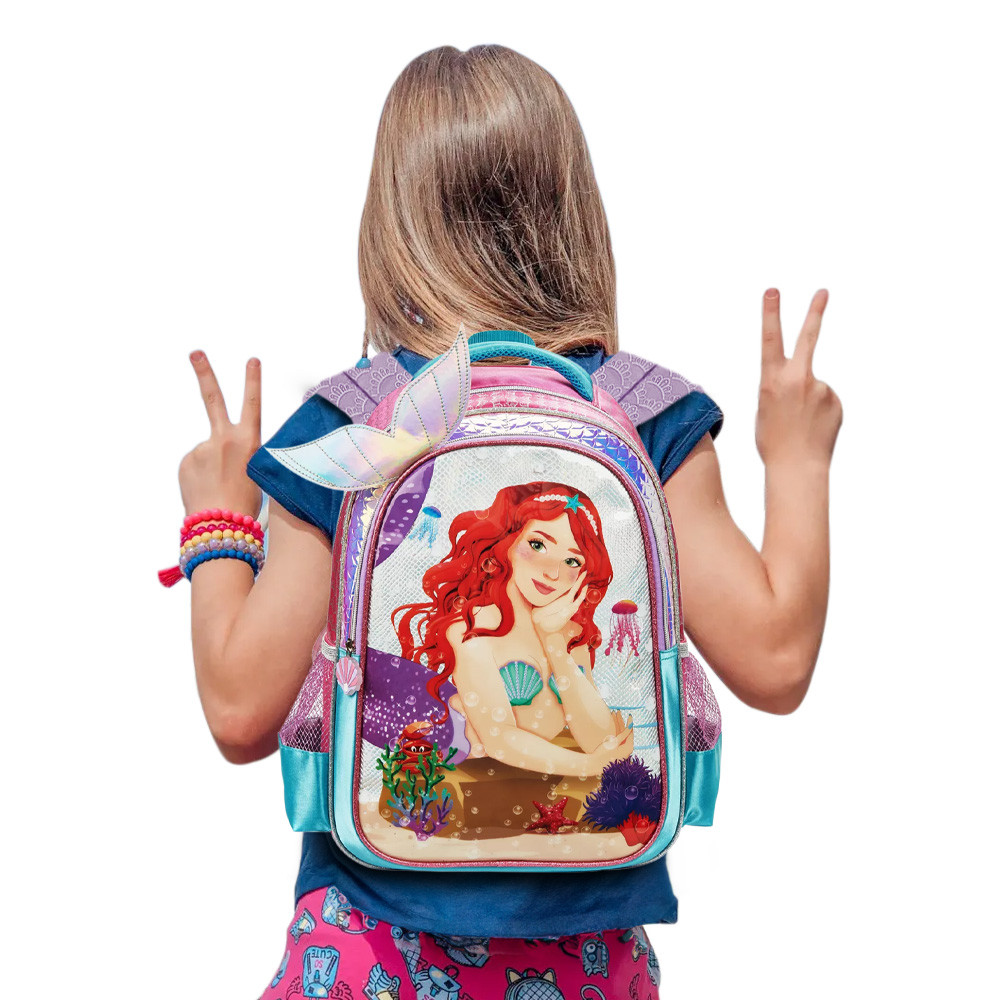 Mochila De Costas Escolar Infantil Meninas Sereia Ruiva 3D