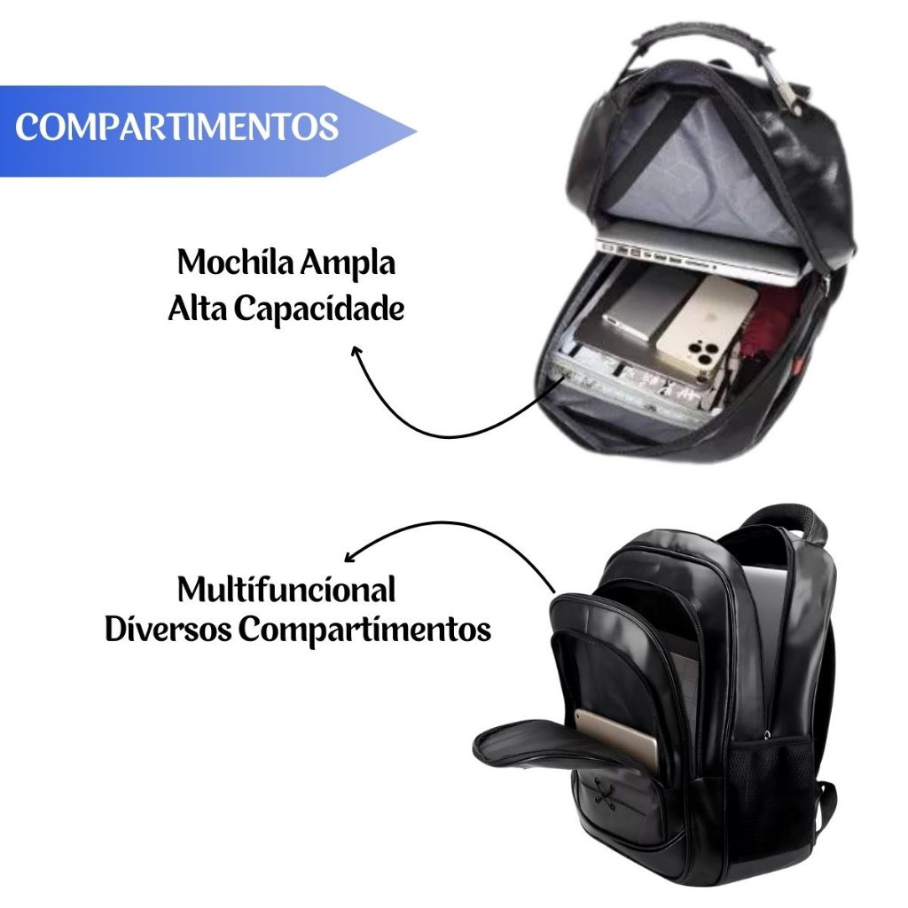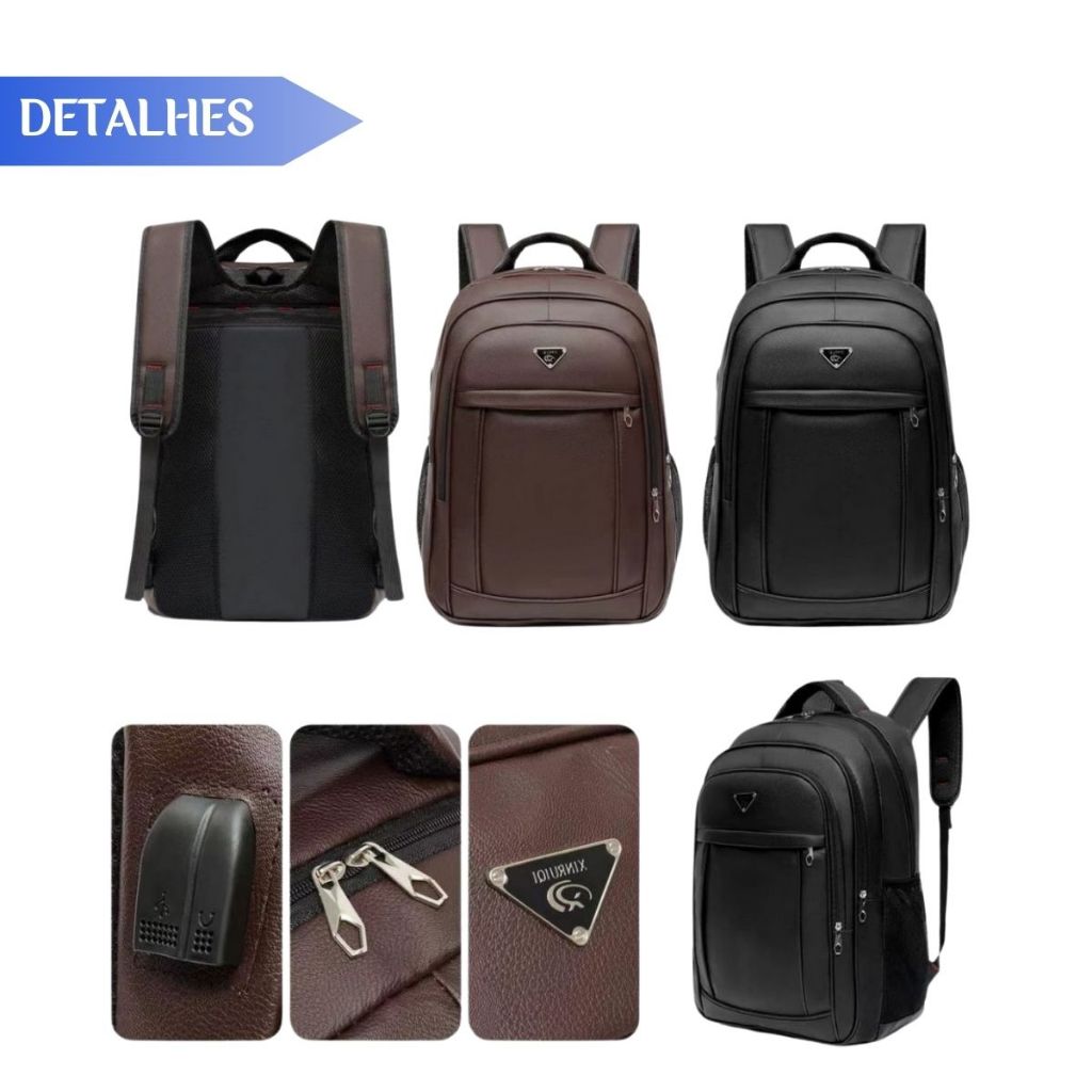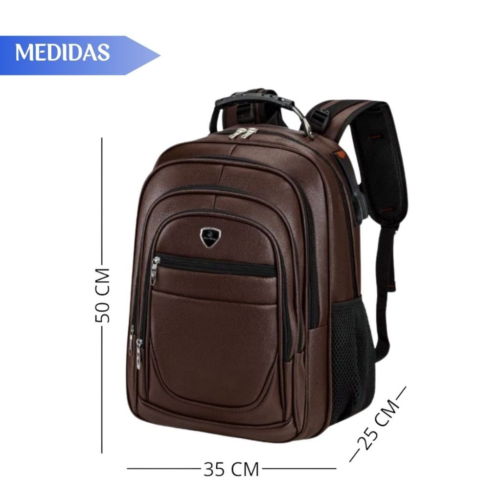 Mochila De Couro Grande E Média Impermeável Trabalho Faculdade Resistente