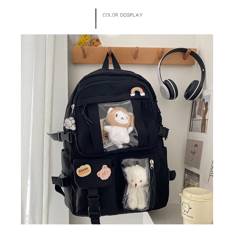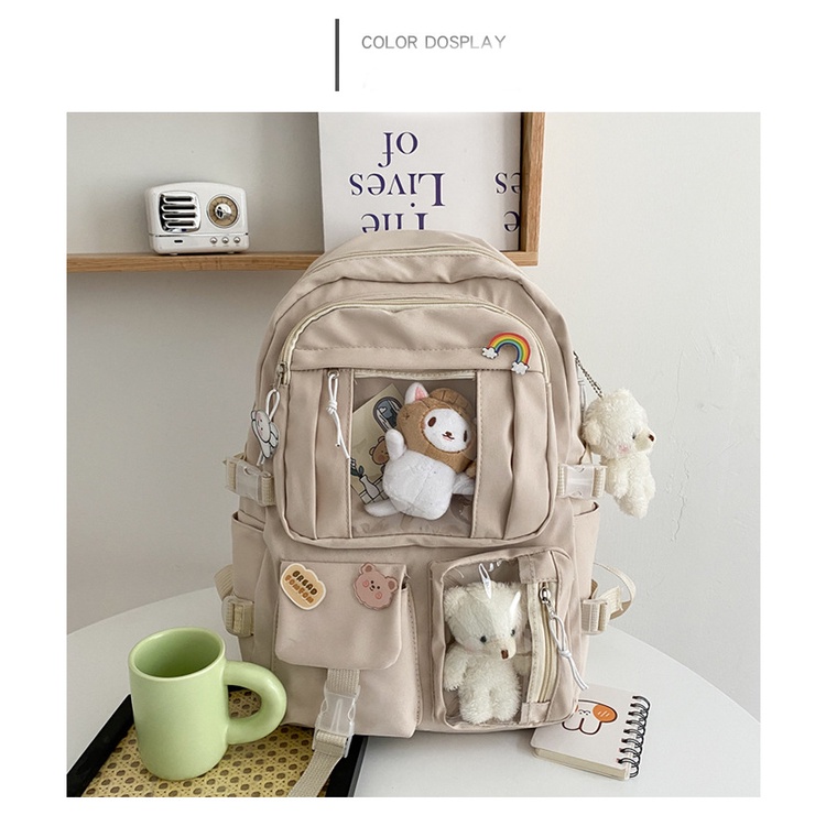 Mochila De nylon Fofa Com Vários Bolsos Para Meninas Estudantes/Ensino Médio