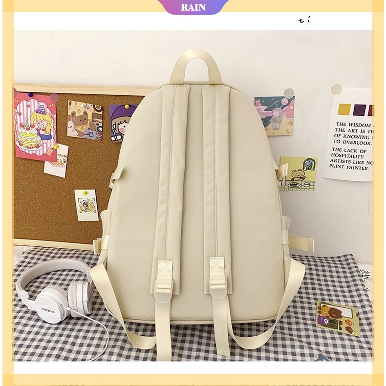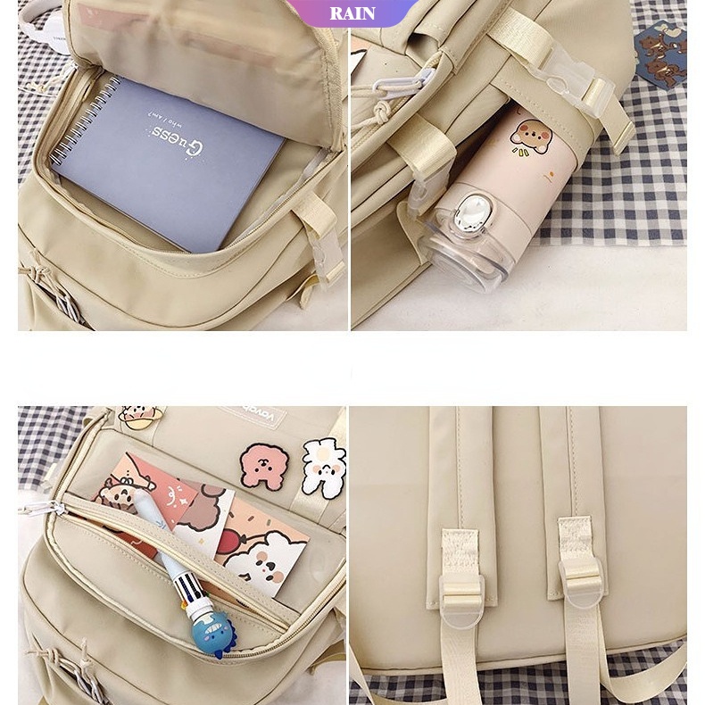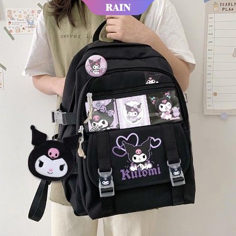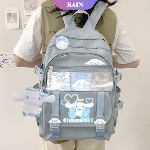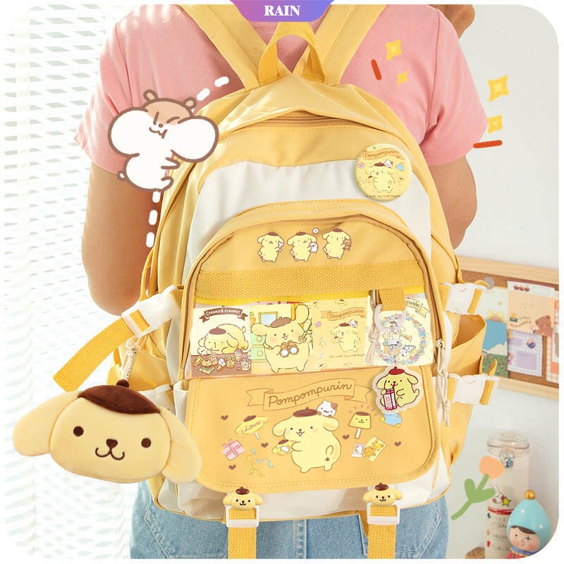 Mochila Escolar De Nylon À Prova D'água Multi-Bolsos Desenho Animado Meninas Estudante Kawaii Cinnamoroll/Kuromi/Pom Purin