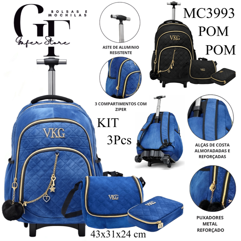 Mochila Escolar Jeans VKG Notebook + Pompom M4286