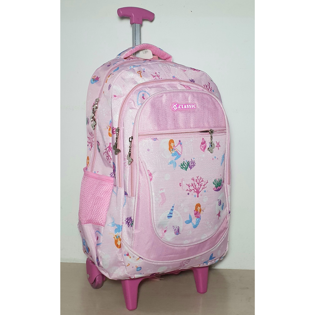 Mochila Escolar Menina com Rodinha de Nylon com Gliter Impermeavel
