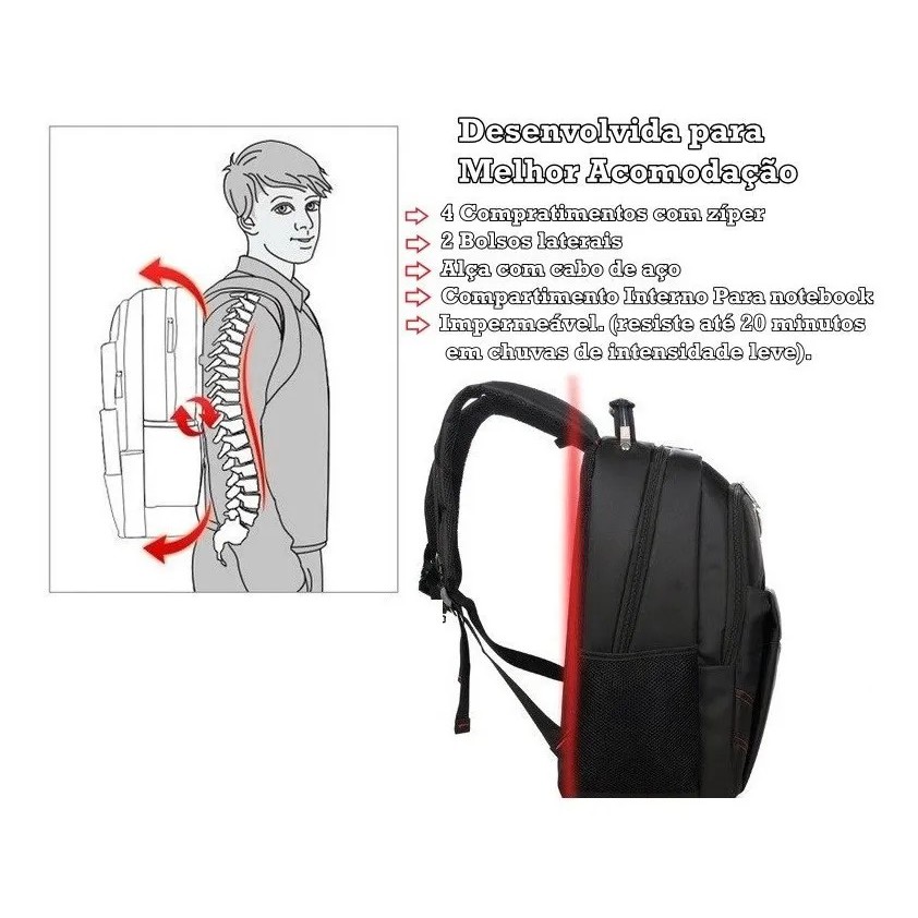 Mochila Escolar Reforçada Notebook 15' Masculino/feminino A