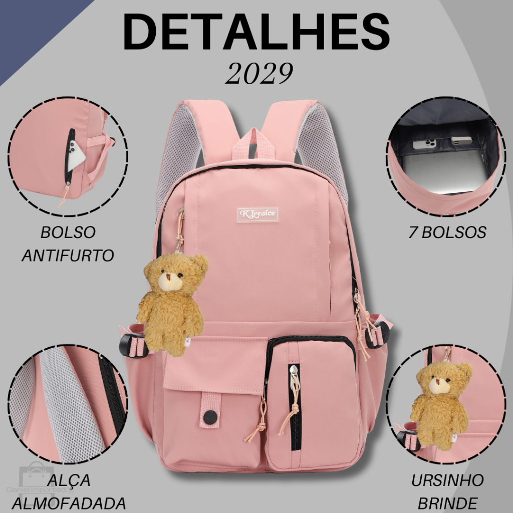 Bolsa - Mochila Escolar Universitária Impermeável Moda Japonesa/Coreana c/ Bolso Secreto (2029/2034)