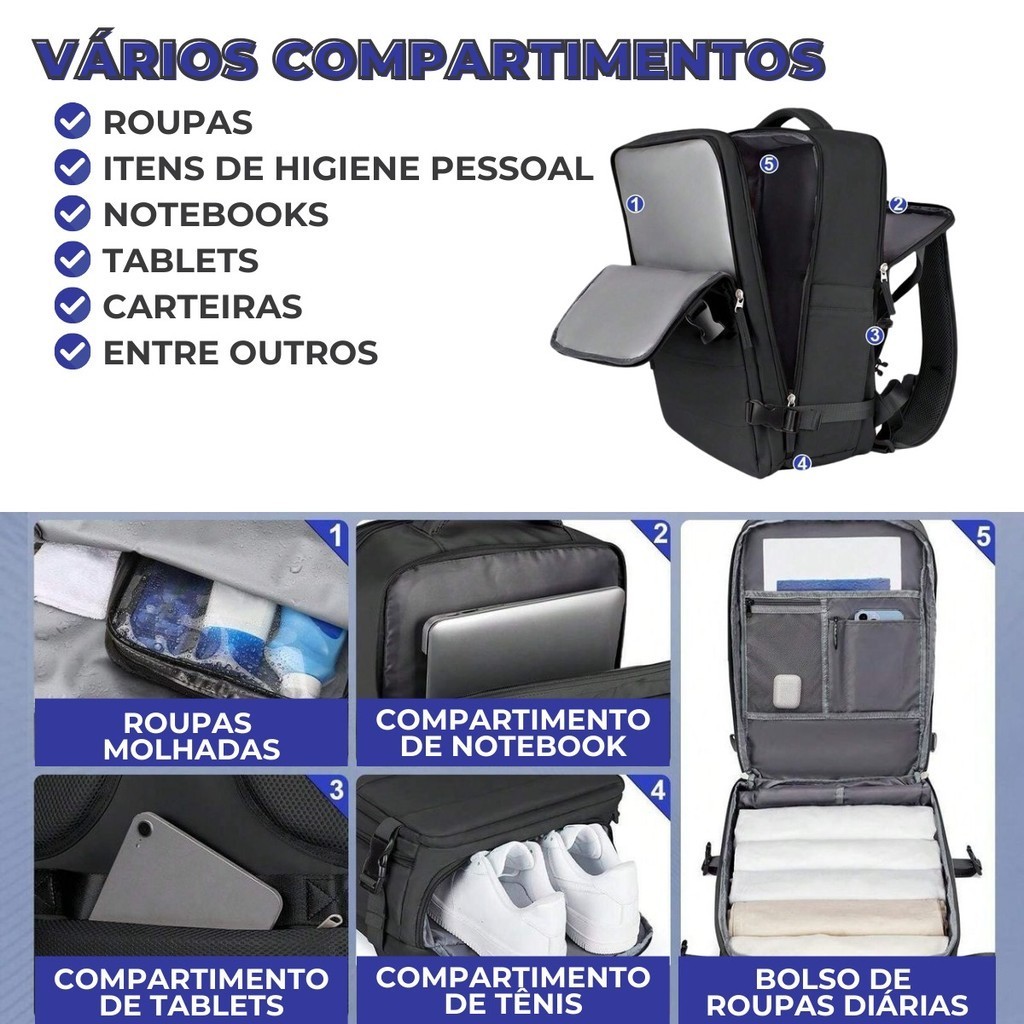 Mochila Executiva Notebook Expansível Organizadora Reforçada Viagem Ferias Malinha Mala