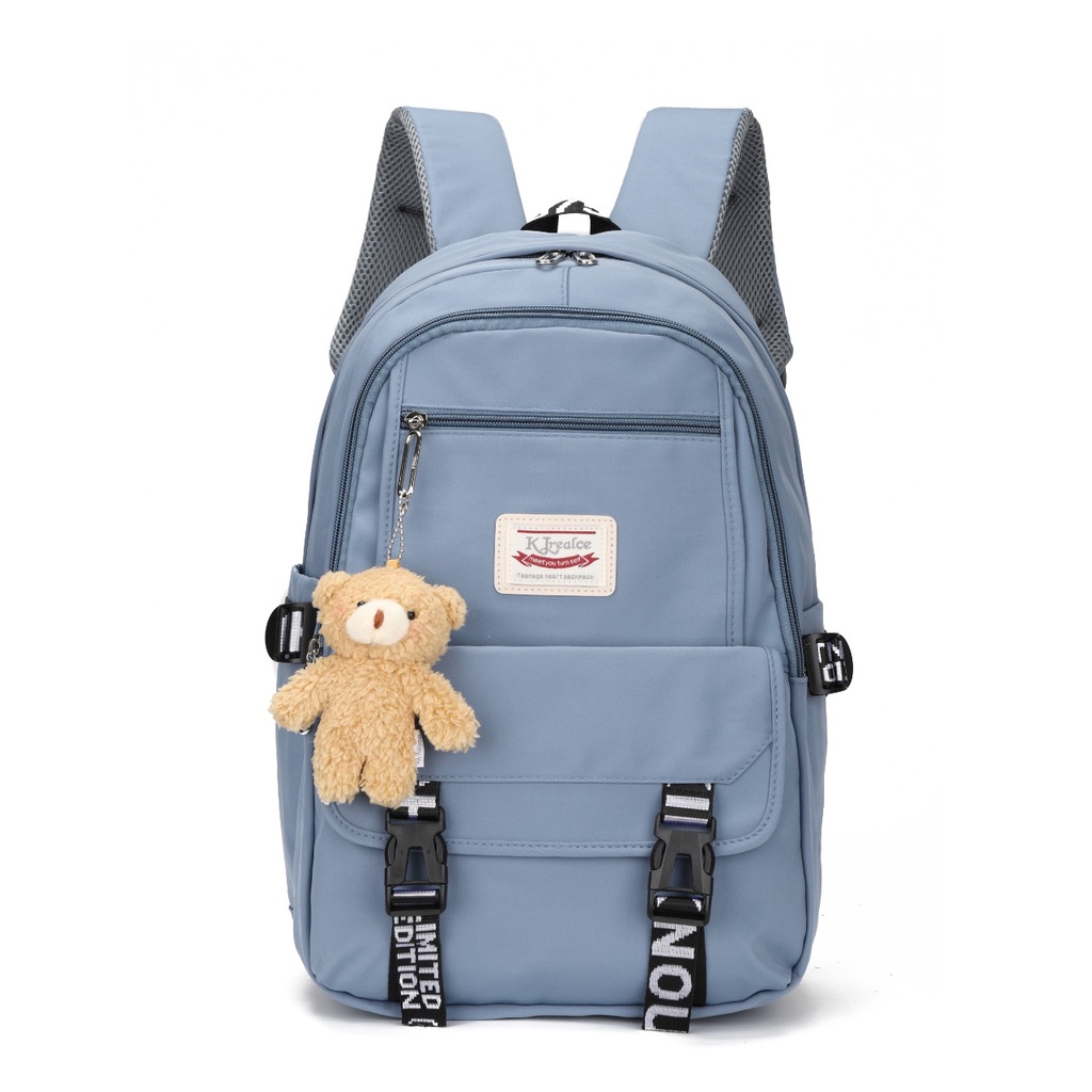 Mochila Escolar Grande Unissex Moda Coreana/Japonesa Antifurto Impermeável + Ursinho (6261/6263)