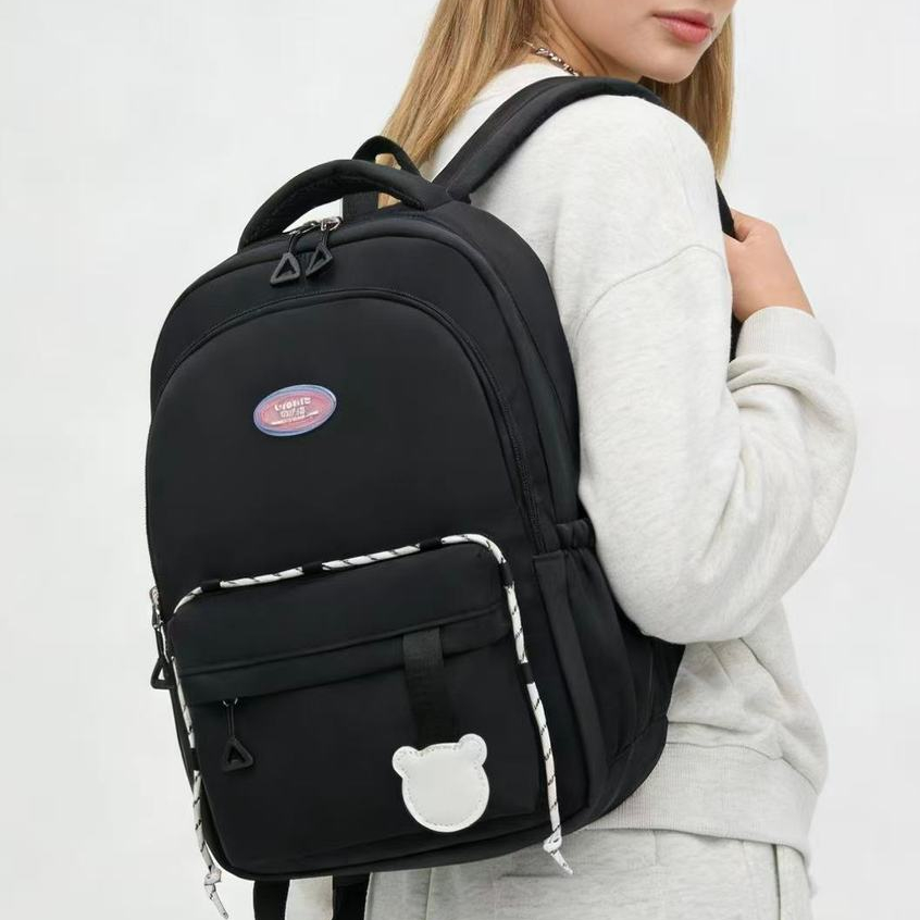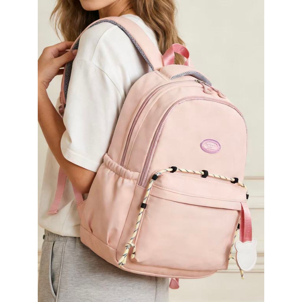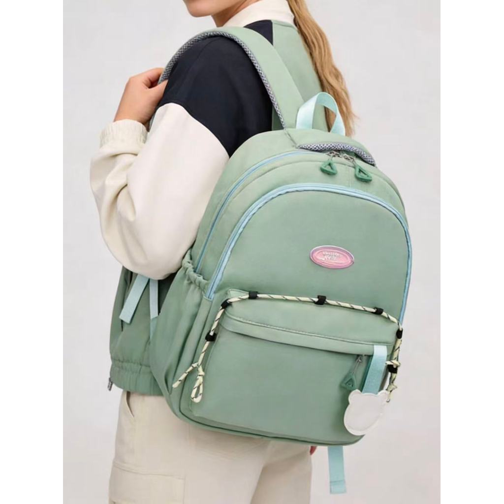 Mochila Unissex Escolar Casual E Moderna Com Cordão Ajustável Em Blocos De Cores Universitário Impermeável X026 LING