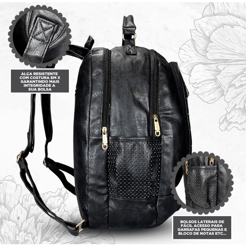 Mochila Feminina Taxinhas Bolsa GRANDE Couro Sintéticos Escolar Faculdade Trabalho