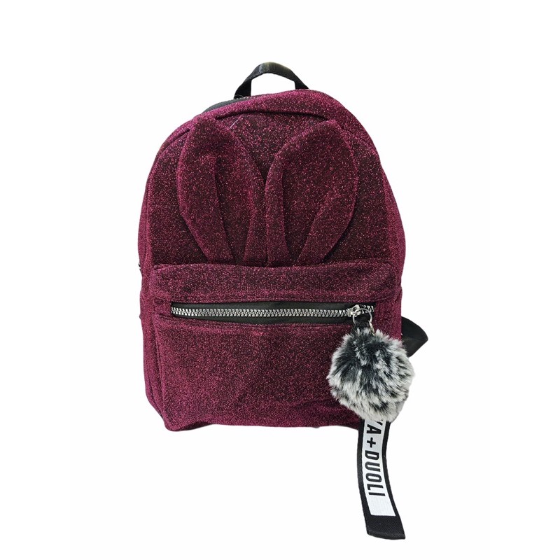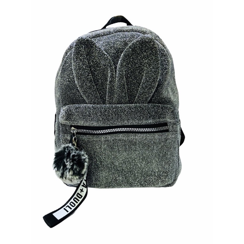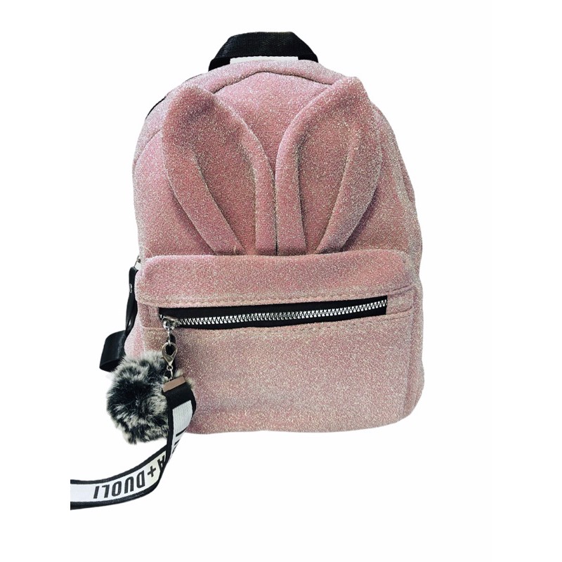 Mochila Feminina glitter orelha de coelho com chaveiro pompom 2062