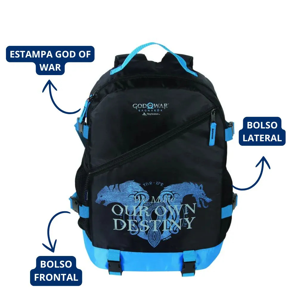 Mochila Grande Escolar Juvenil Costas G God of War Ragnarok Preta Masculina Menino