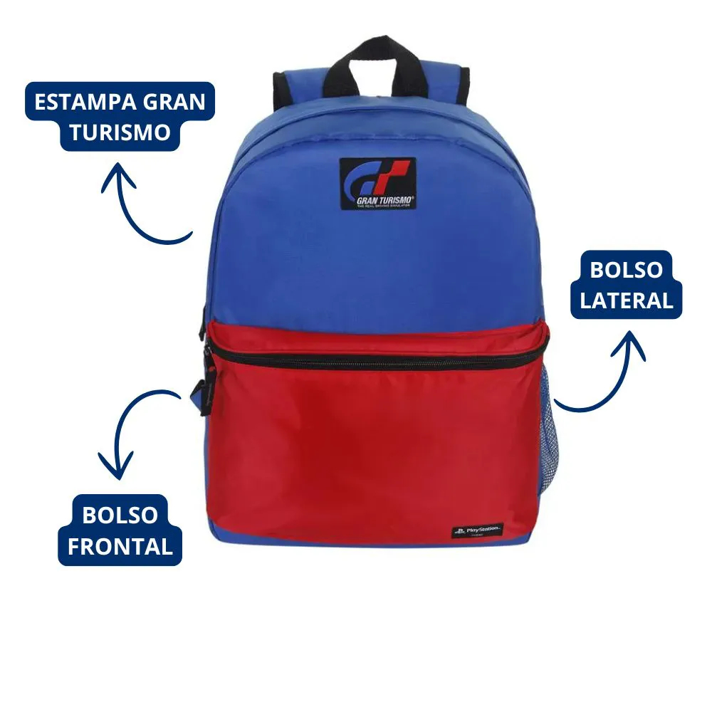 Mochila Grande Escolar Juvenil Playstation Gran Turismo Azul/Vermelha Estilosa Resistente Masculina Menino