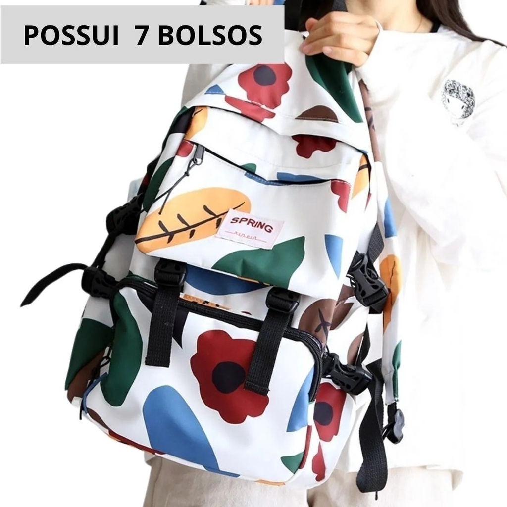 Mochila Grande Folhas Colorida Escola Trabalho Viagem