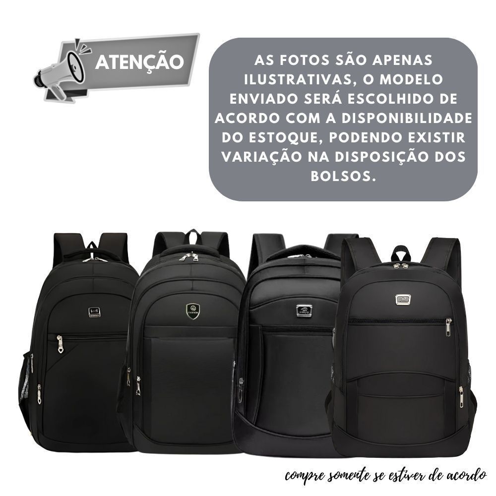 Mochila Grande Masculina Feminina Executiva Impermeável Reforçada com Bolso para Notebook - Preto