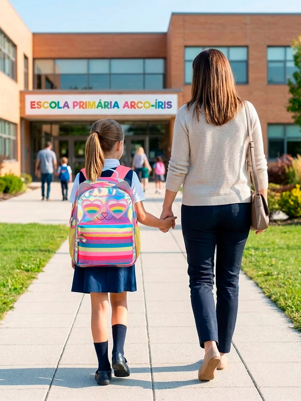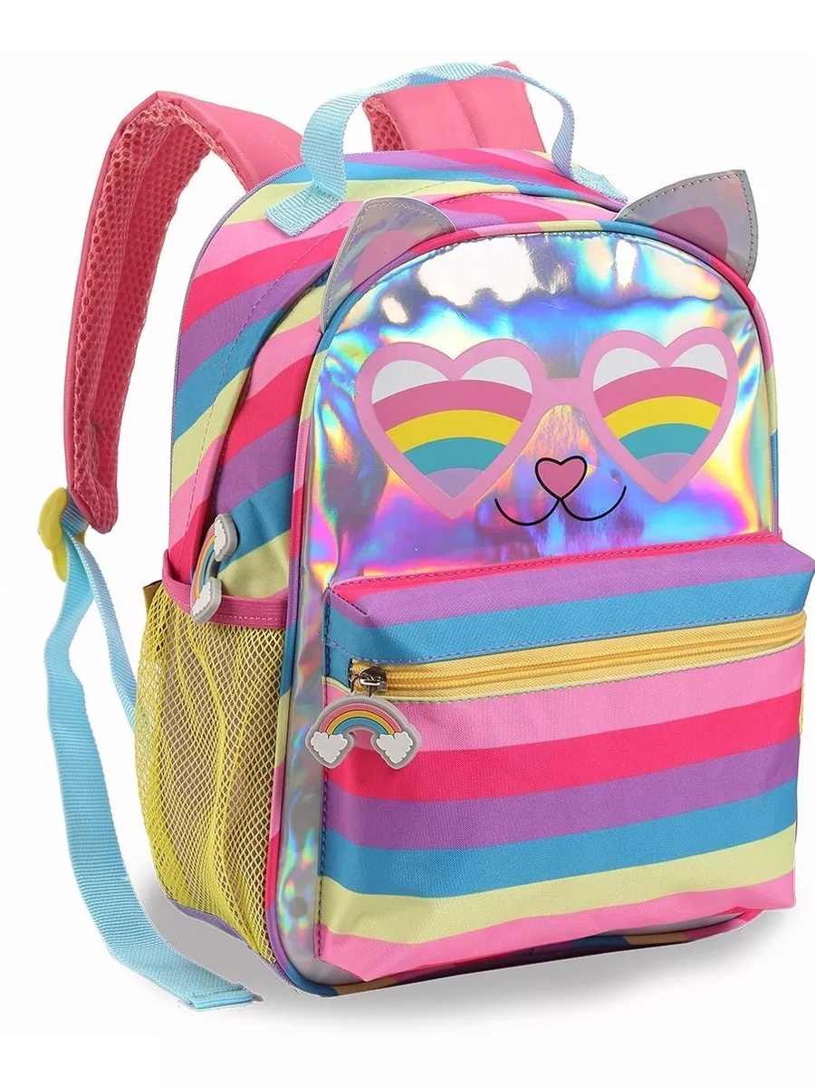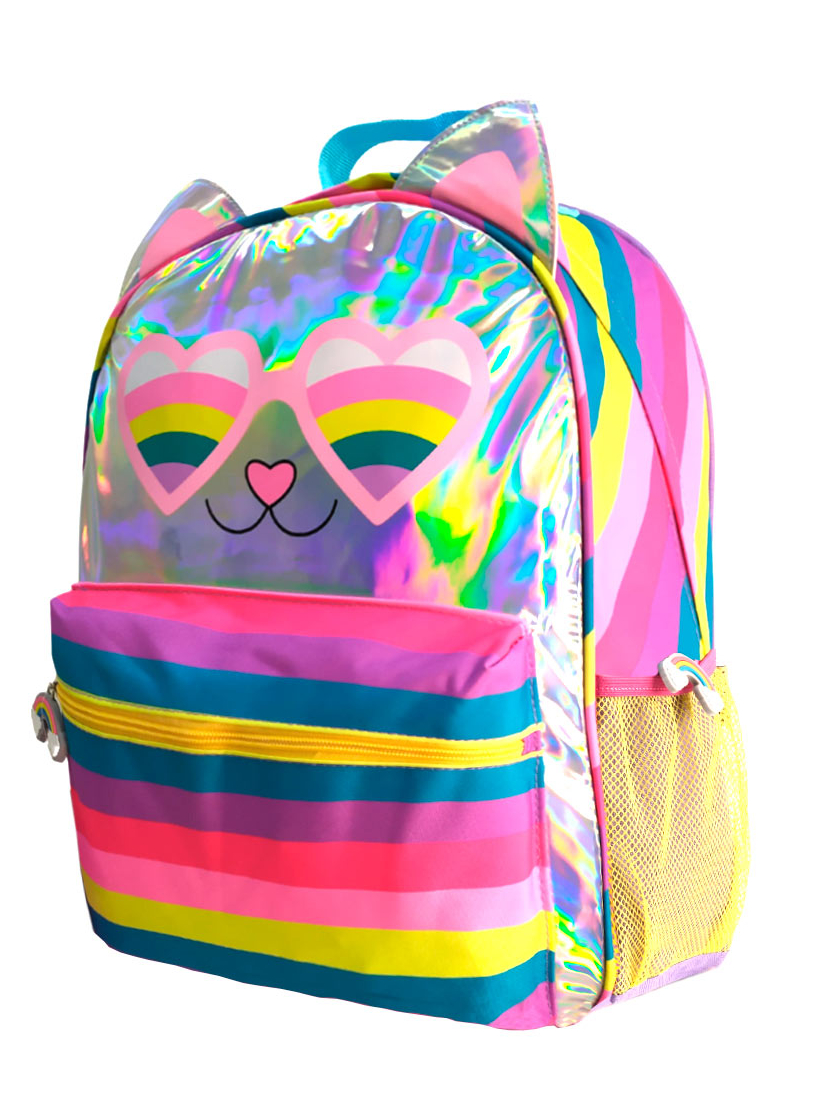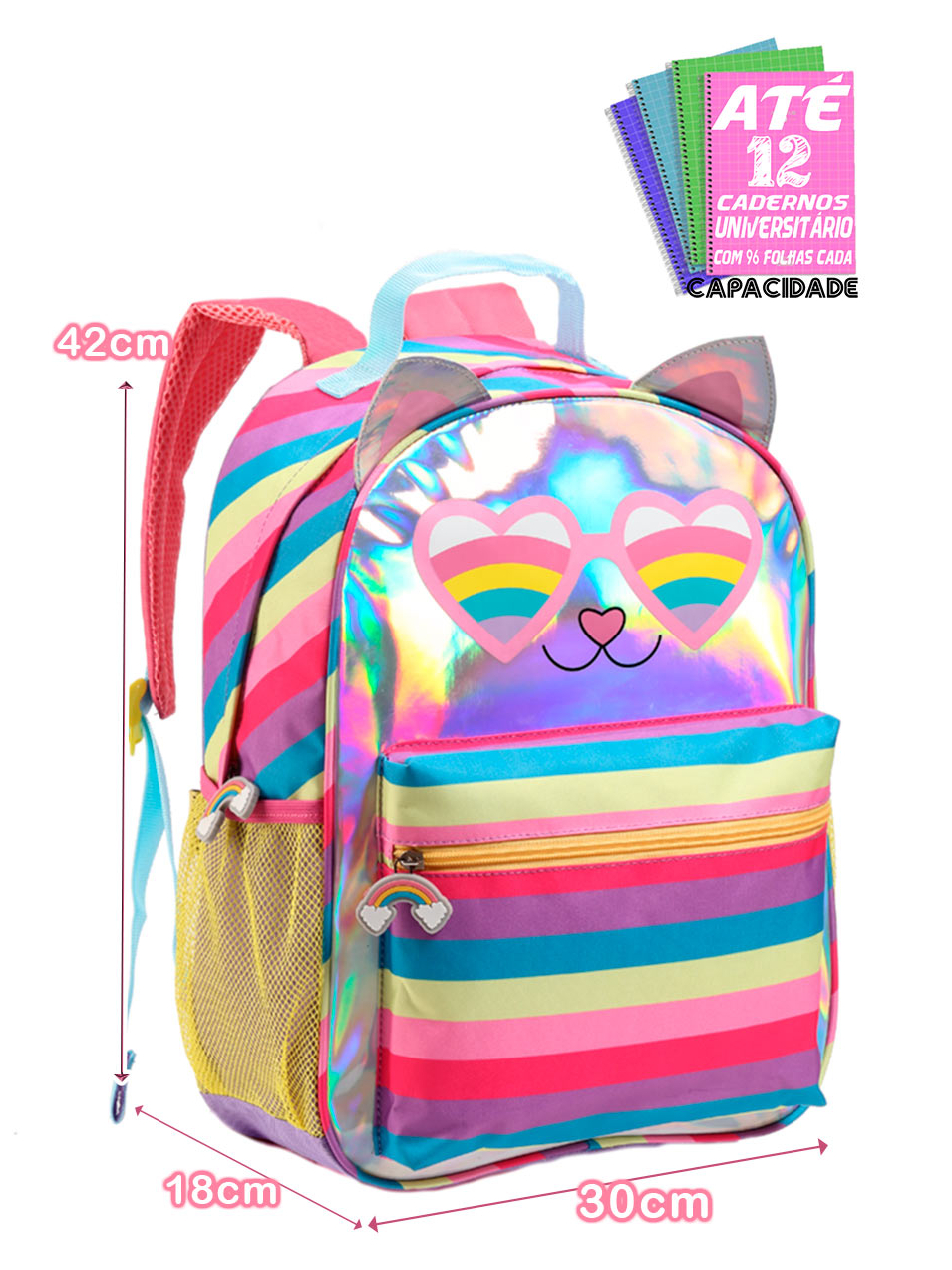 Mochila Infantil 16 Gatinha Com Bolso Arco Íris 41cm Tamanho G