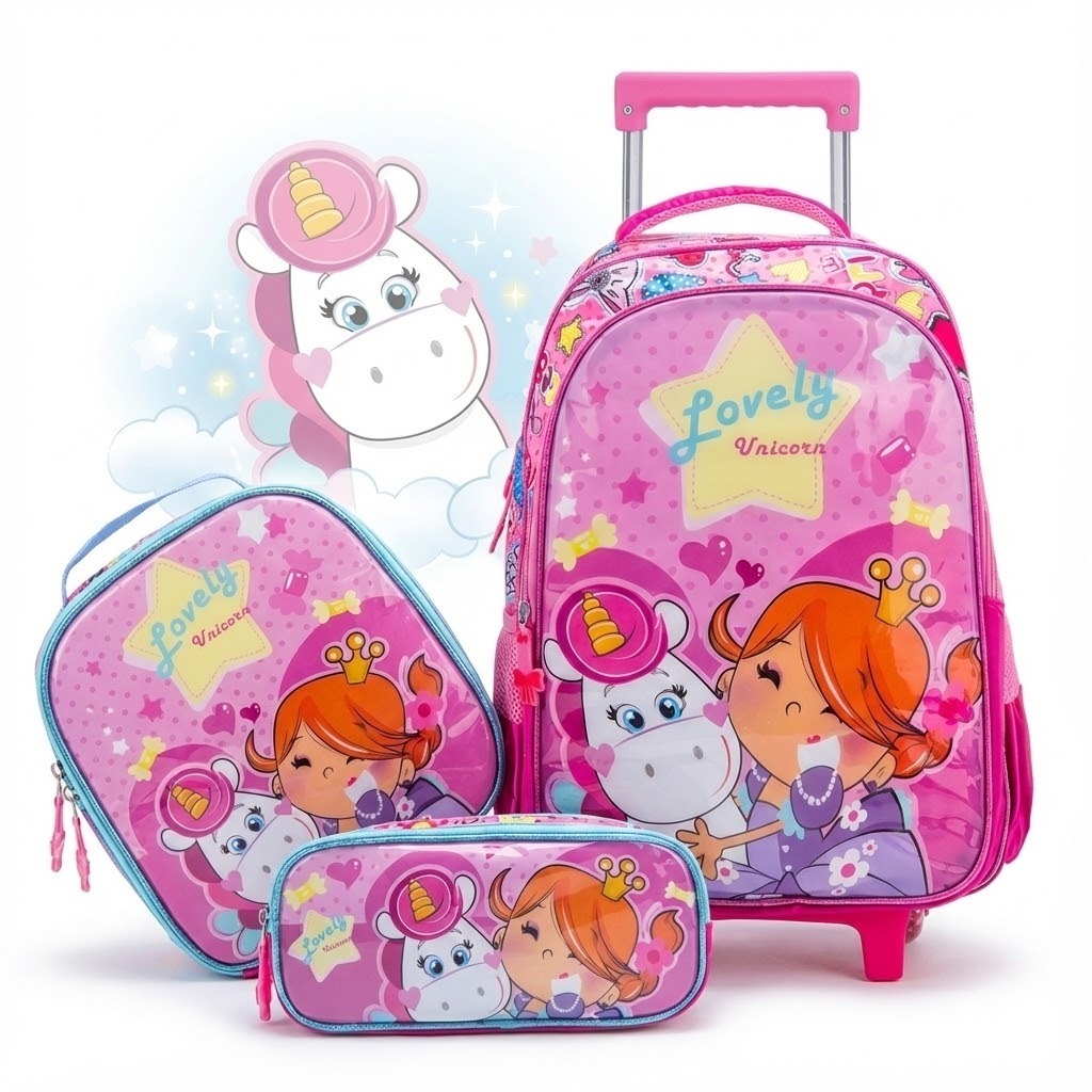 Mochila Infantil Escolar Menina Kit Mochila Lancheira Térmica Estojo Duplo Impermeável