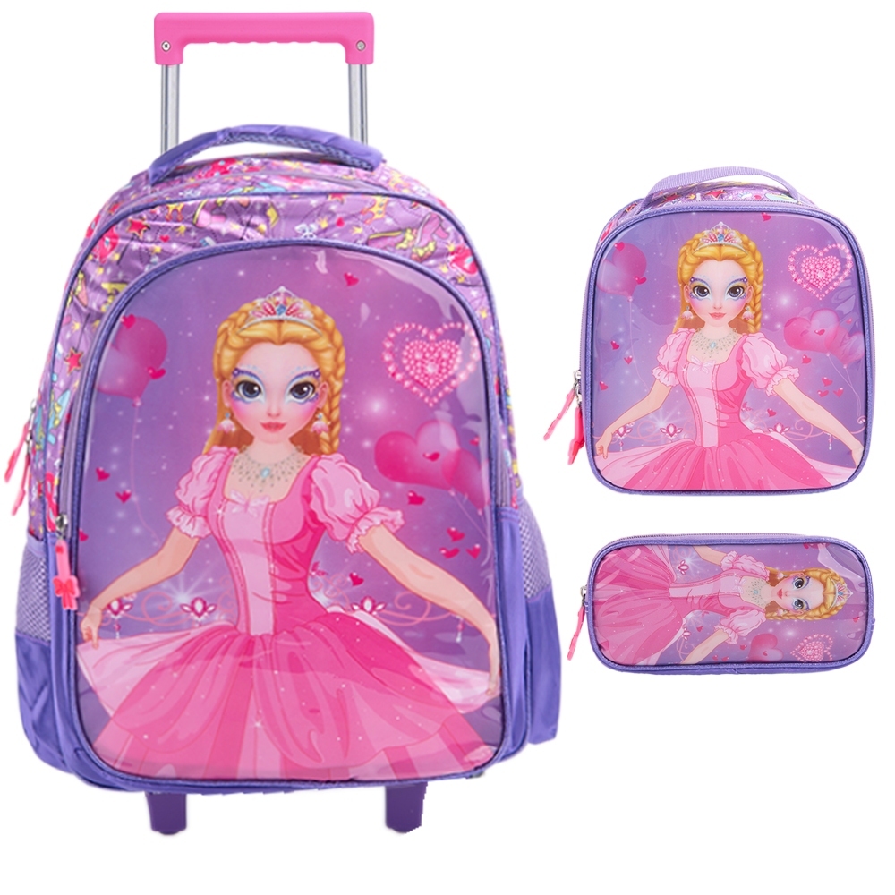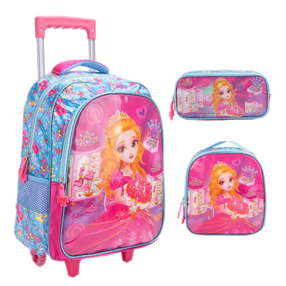 Kit Mochila Infantil Escolar Menina Unicórnio Mochila de Carrinho + Lancheira Térmica + Estojo Duplo