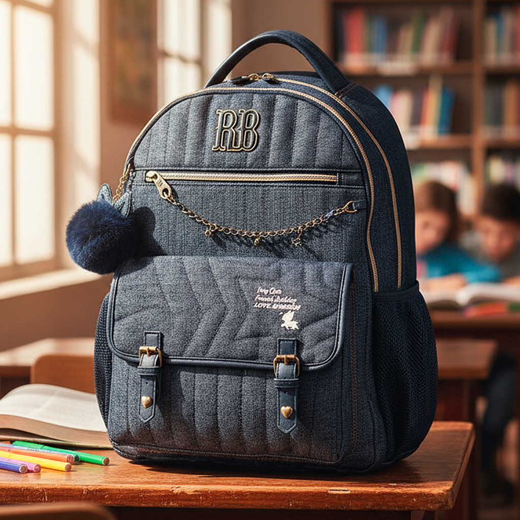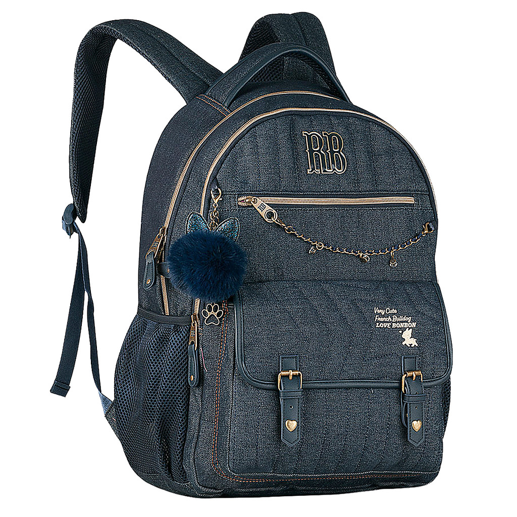 Mochila Jeans Rebecca Bonbon RB Costa Escola Juvenil Femini