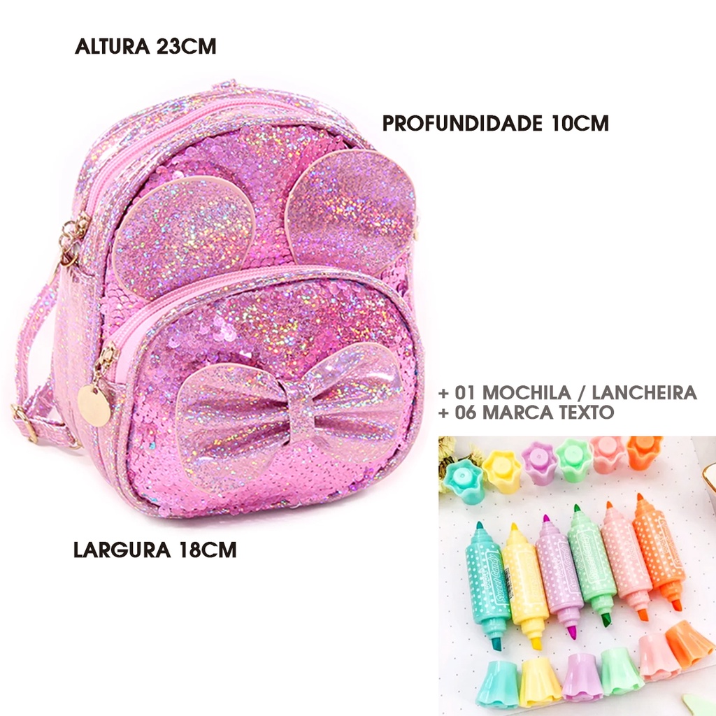 Mochila Lancheira + Marca Texto Princesa Barbie Presente Menina Laço Kit 6 Candy Balas Lanche Passeio Kawaii