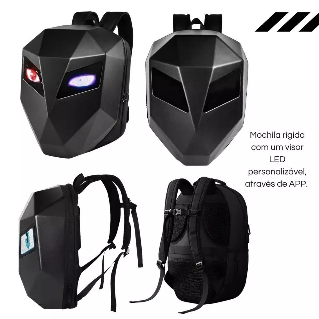 Mochila Led Motoqueiro Preta Design Lisa 20 Litros Urbana