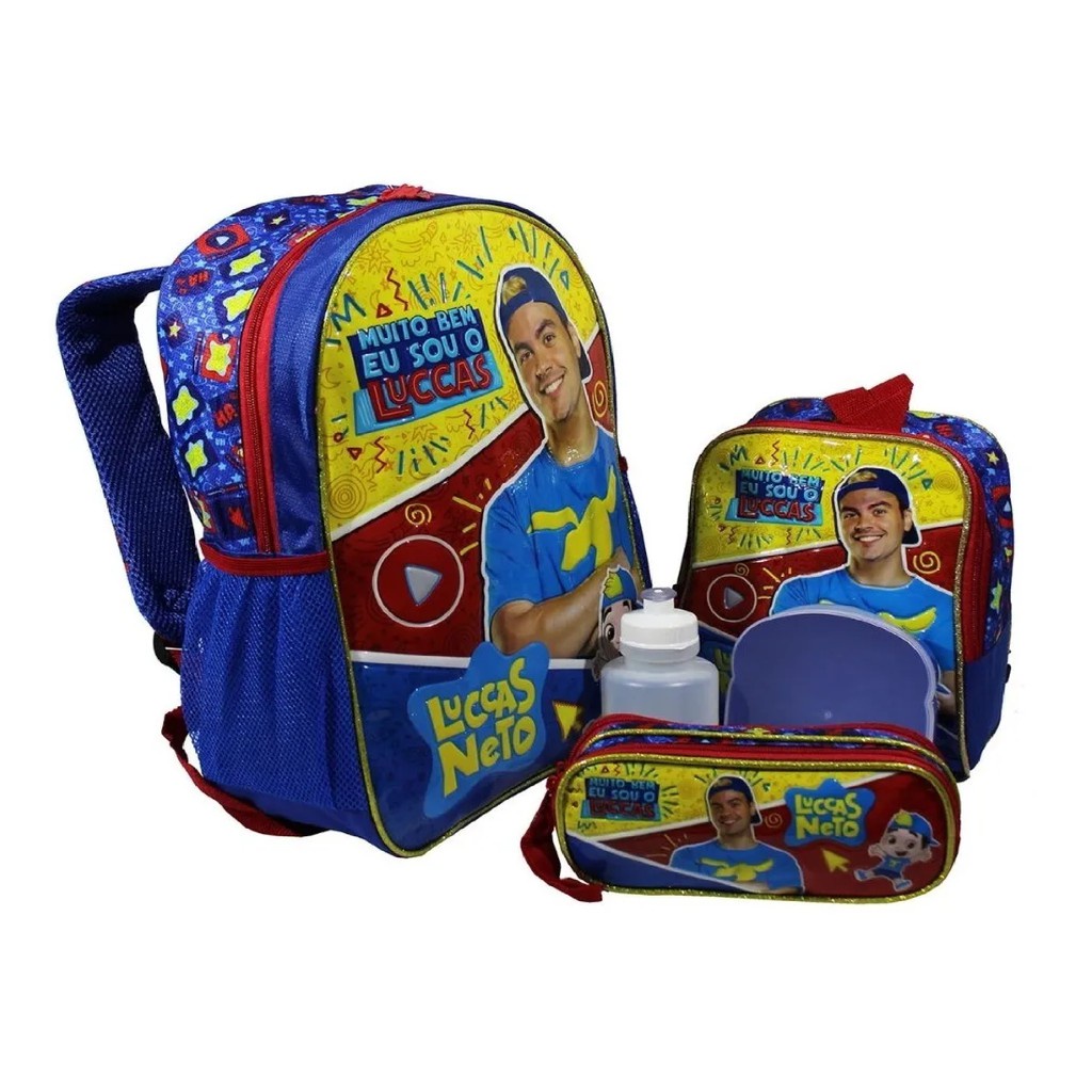 Mochila Luccas Neto Infantil Masculina Lucas Lancheira Estojo Costas