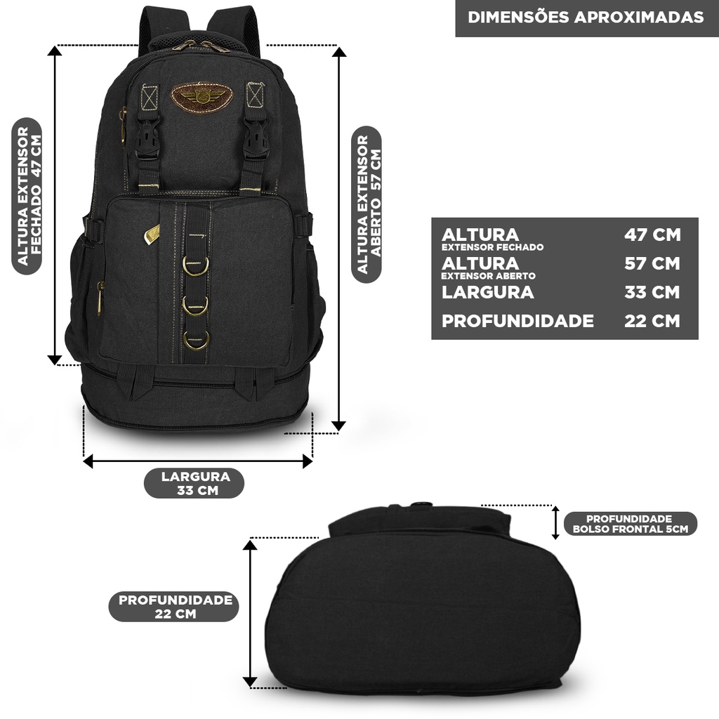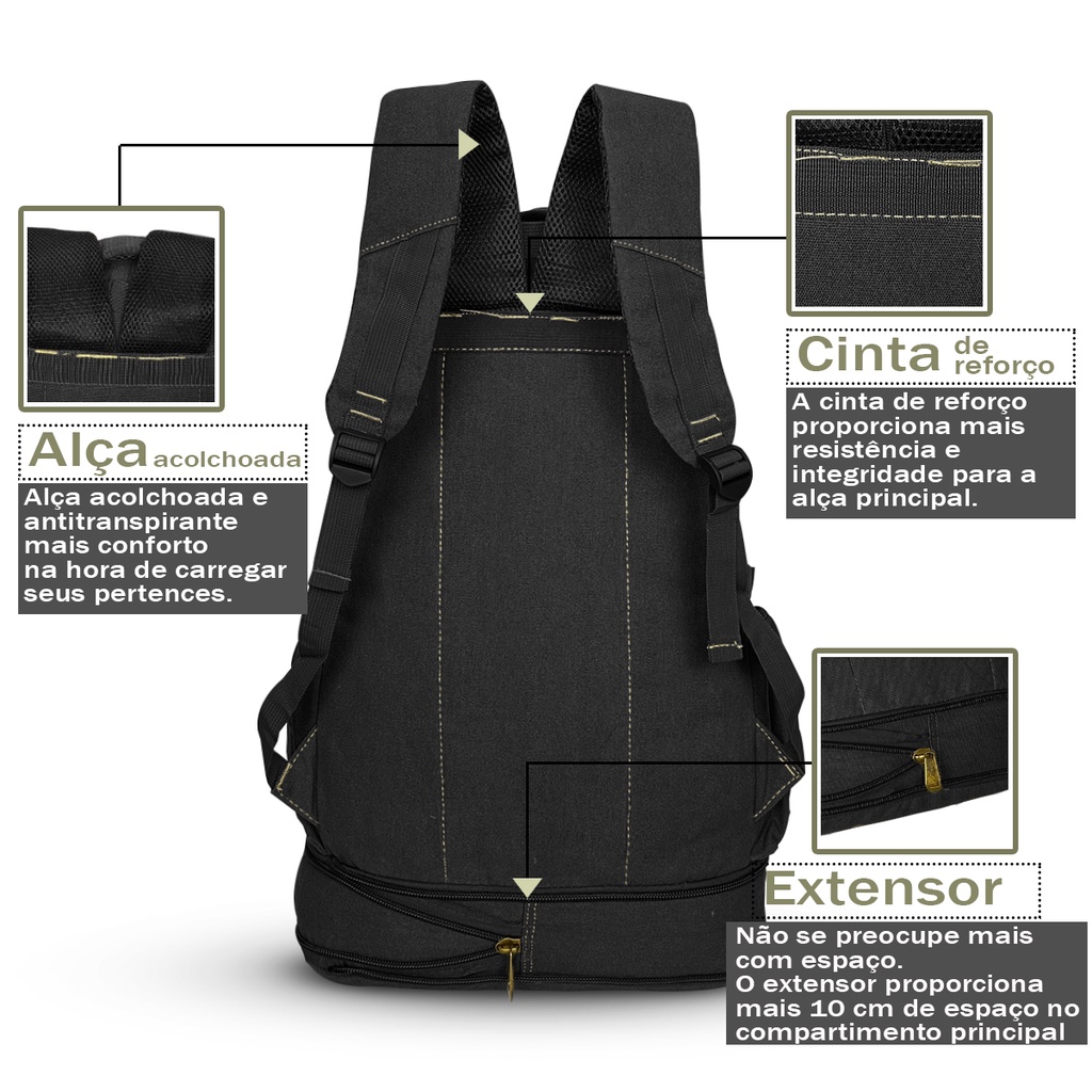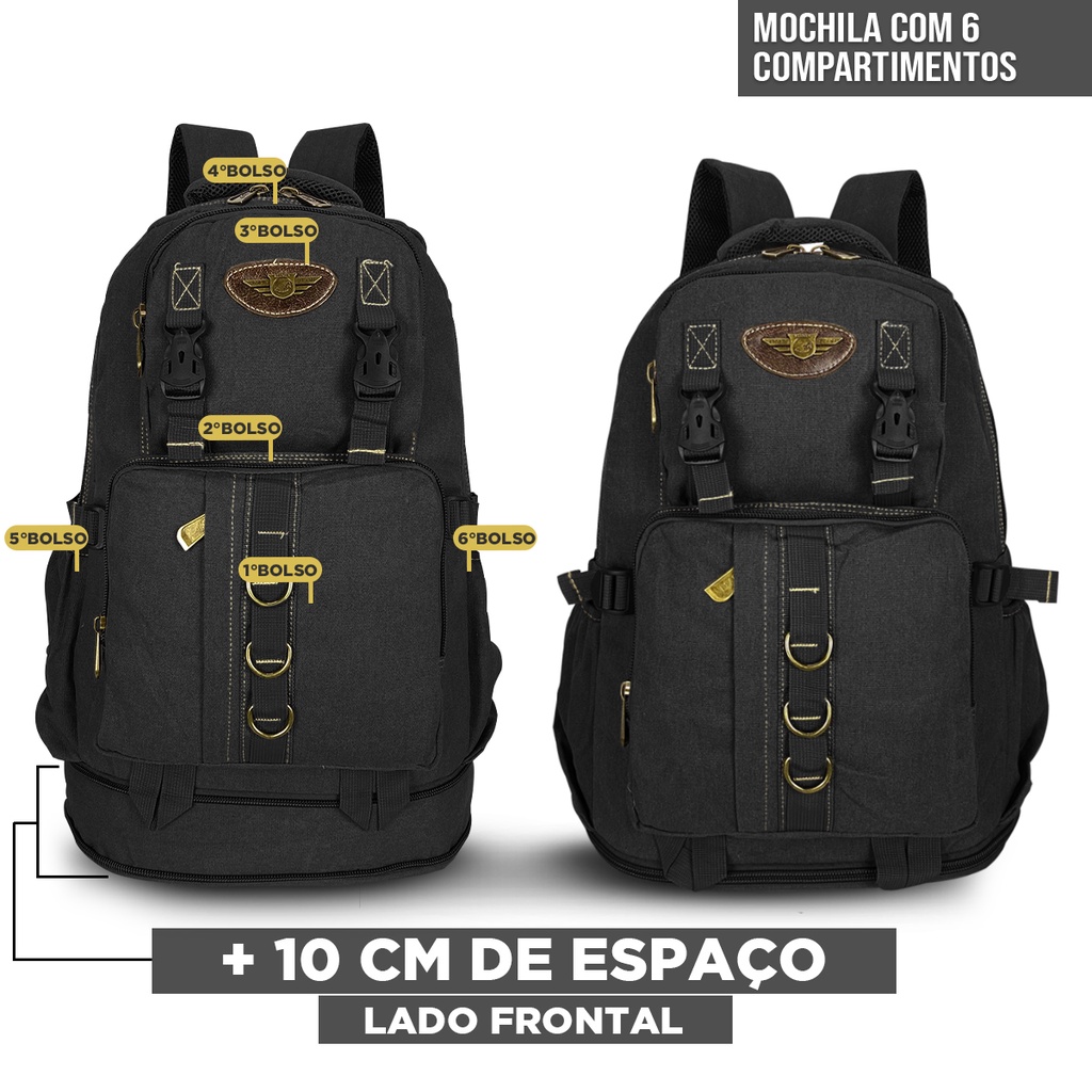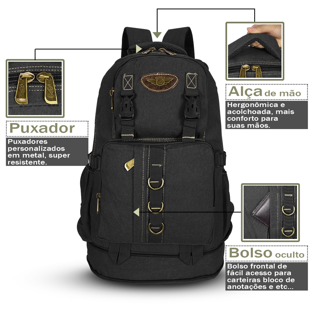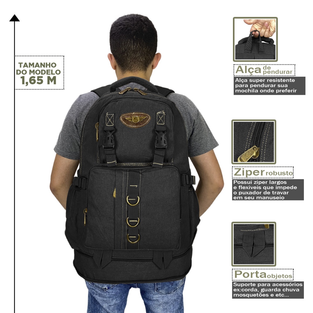 Mochila Masculina 50l Litros Em Lona Ideal Viagens Uso Diário Pronta Entrega
