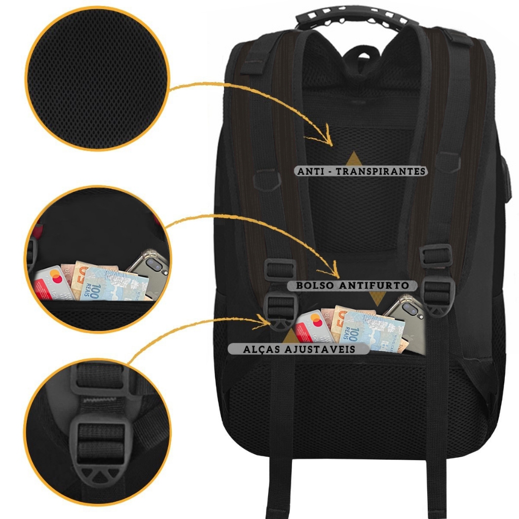 Mochila Masculina Feminina Reforçada Alto Padrão Saída Usb/Fone Semi Impermeável