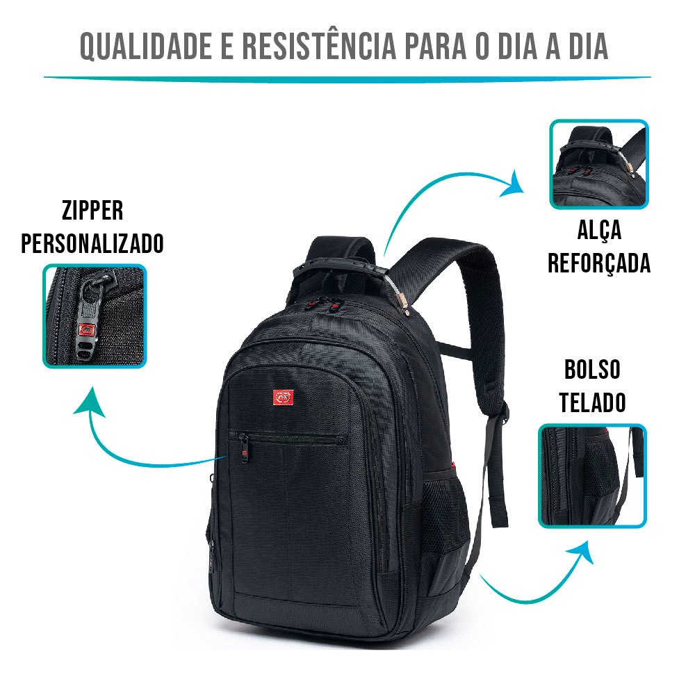Mochila Masculina Reforçada Ecko Notebook Preta Alça Cabo de Aço