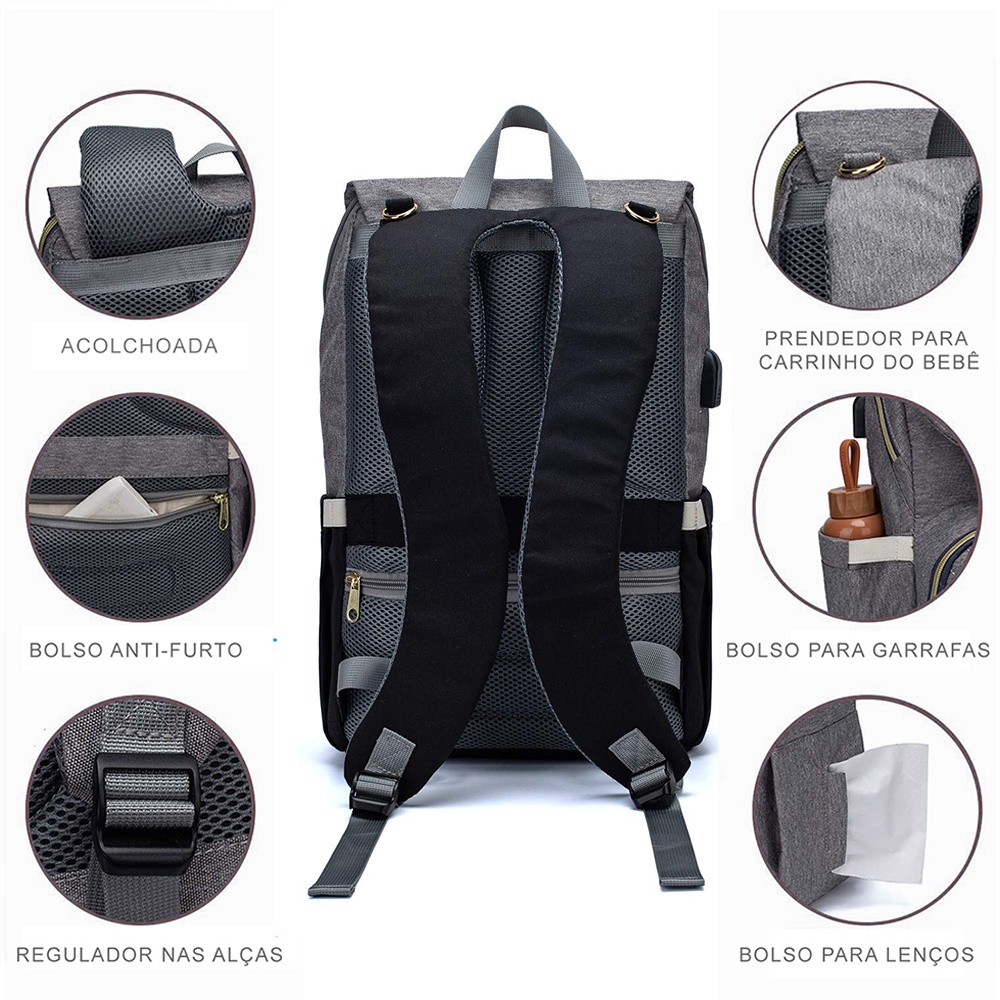 Mochila Maternidade Le queen Original c/Trocador Gancho Usb Feminina