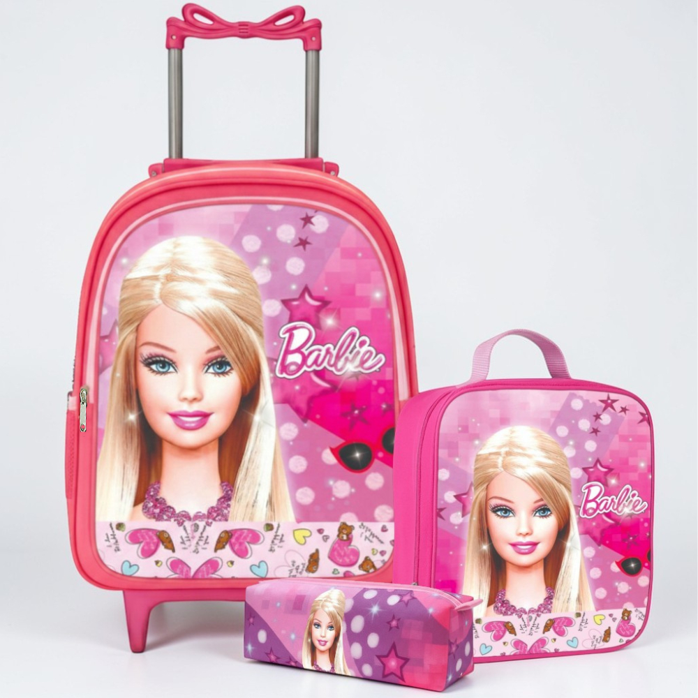 Mochila Rodinha Escolar Menina infantil + Lancheira Térmica + Estojo