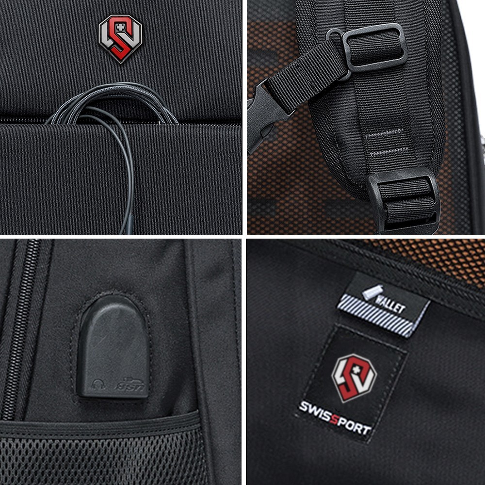 Mochila Swissport Masculina Alça Cabo De Aço Reforçada Preta