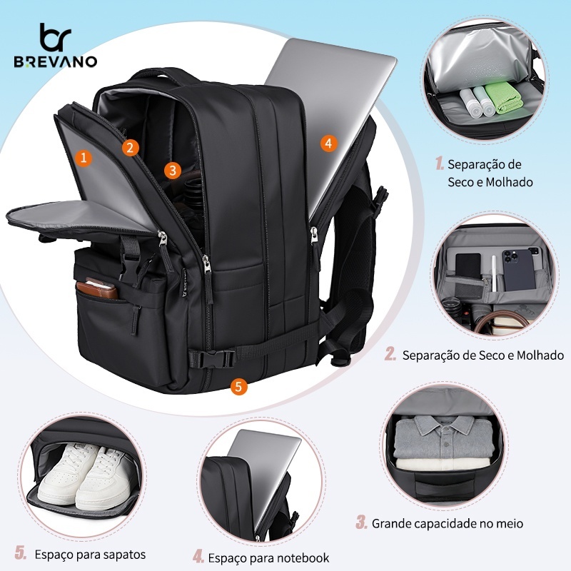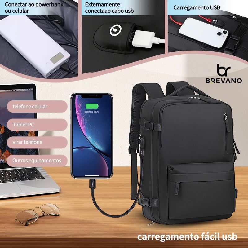Mochila Viagem Feminina Masculinas Multifuncional Reforçada Impermeável Expansível Mochila Notebook
