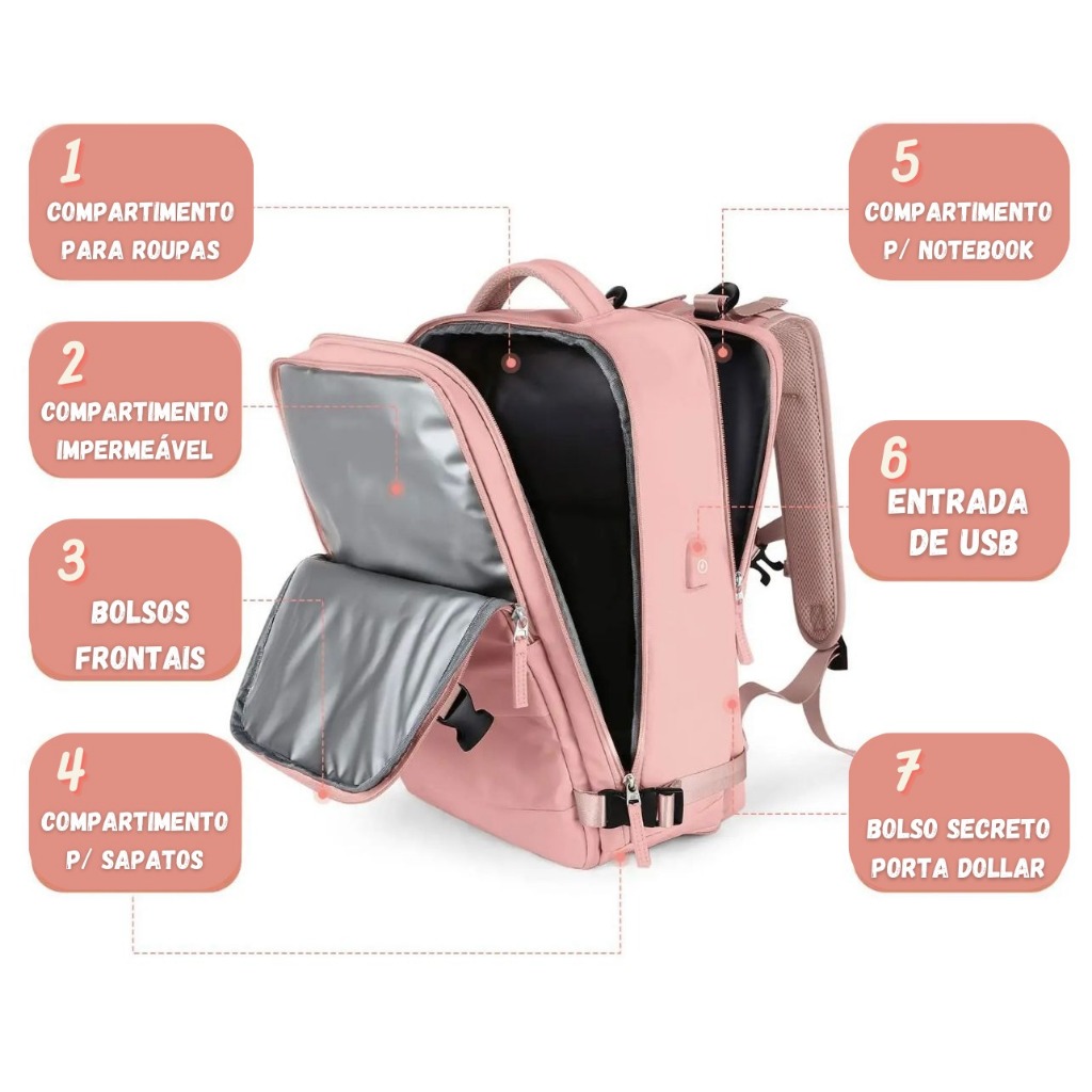Mochila Aeroporto Viagem Grande Impermeável Trilha Esporte Camping para mala de bordo avião