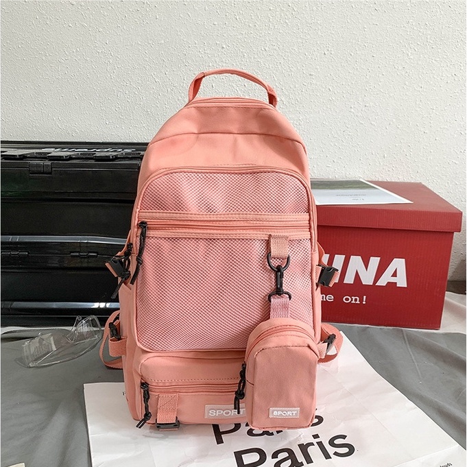 Mochila feminina grande Nylon impermeável escolar faculdade Com Bolsinha