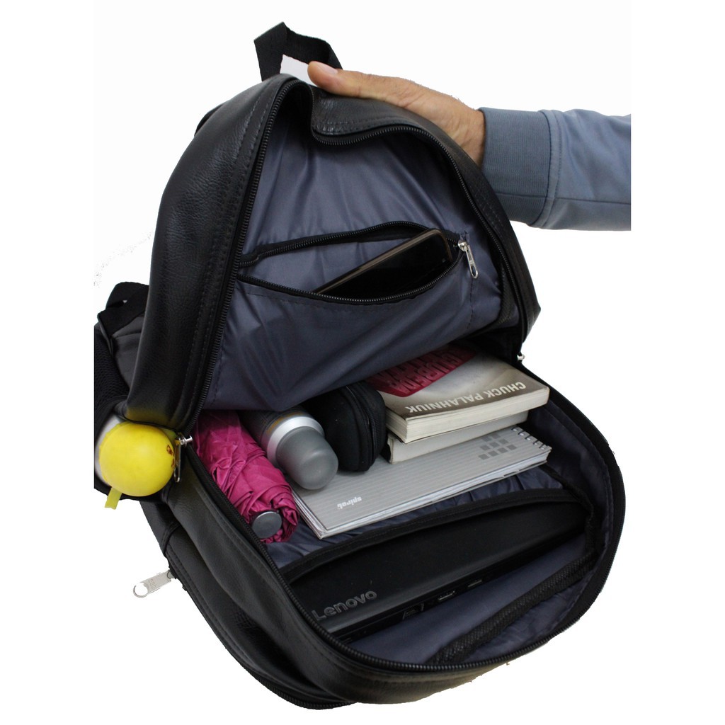 Mochila grande com bolso térmico e porta notebook em couro sintético unissex