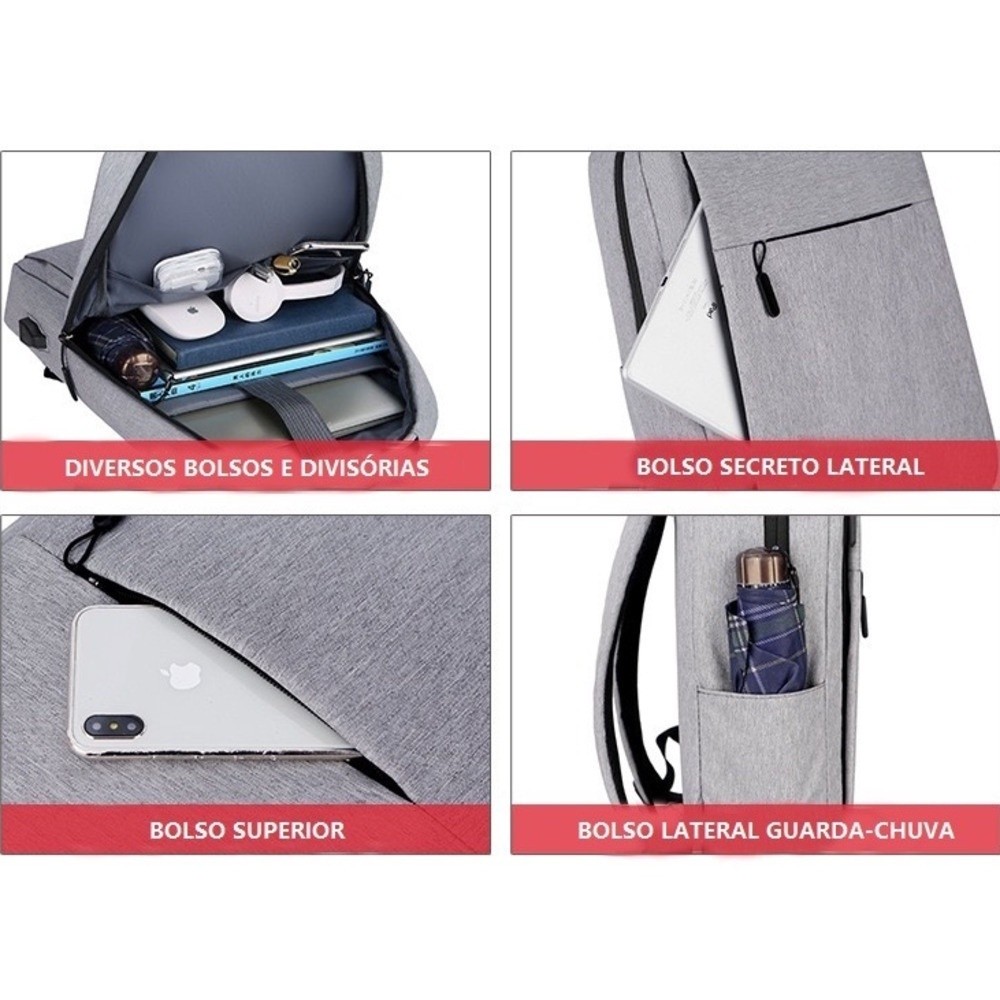 Mochila masculina Para Notebook Moda 18l 15.6 Polegadas Fone de ouvido e USB Marisa