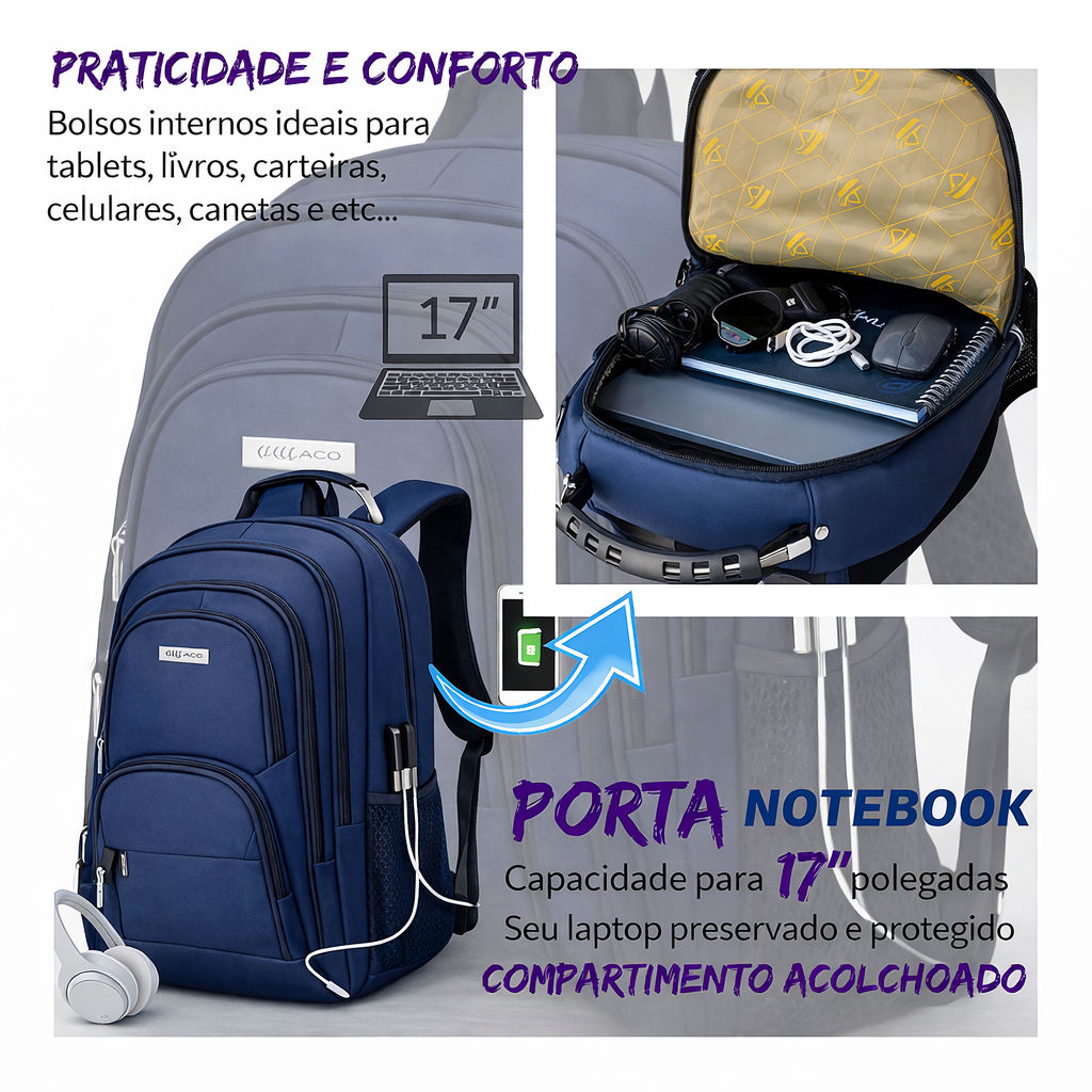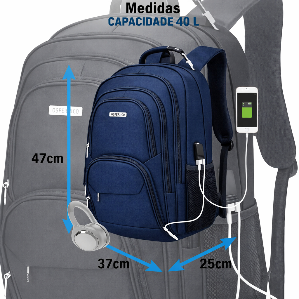 Mochila para Escola Reforçada com Entrada USB Impermeável
