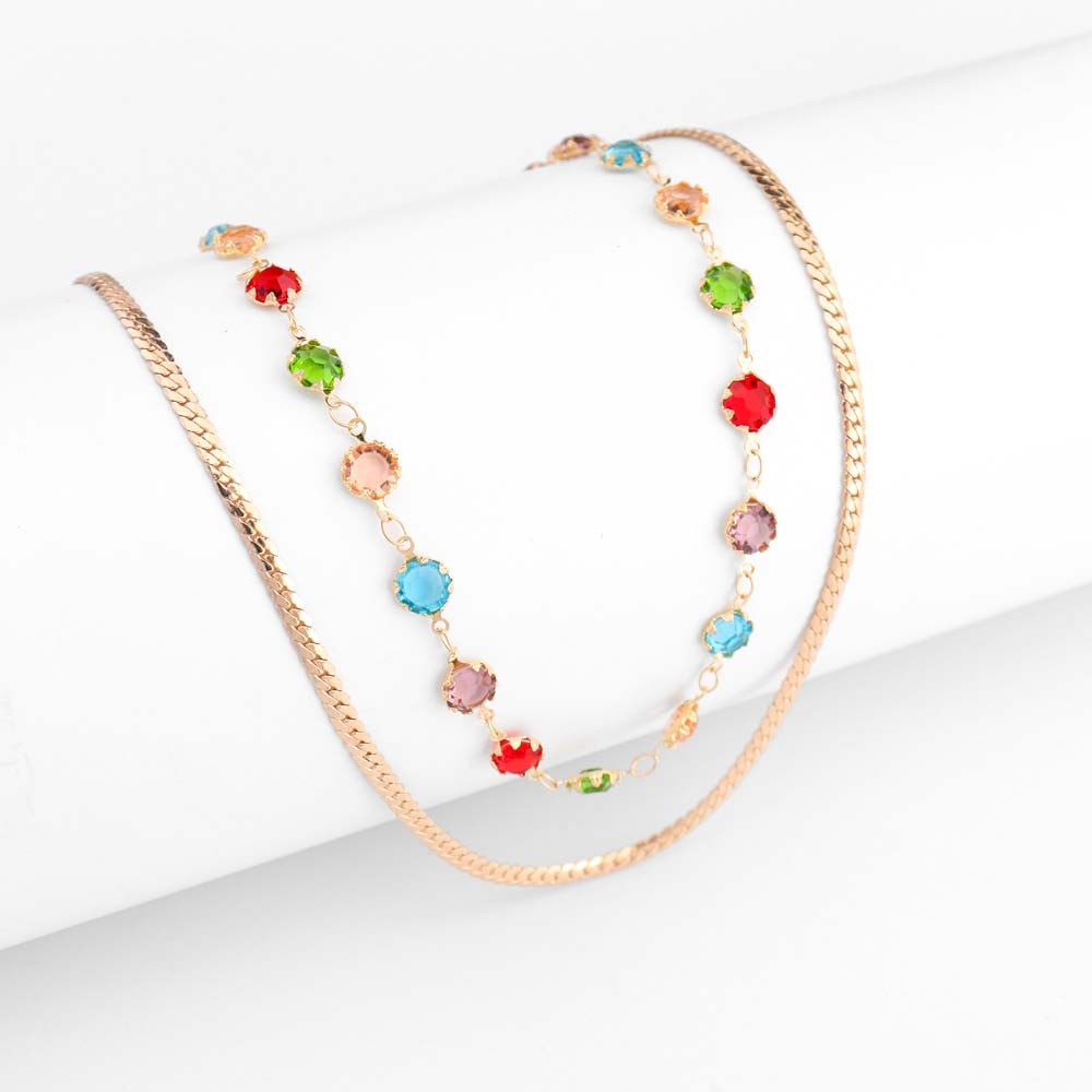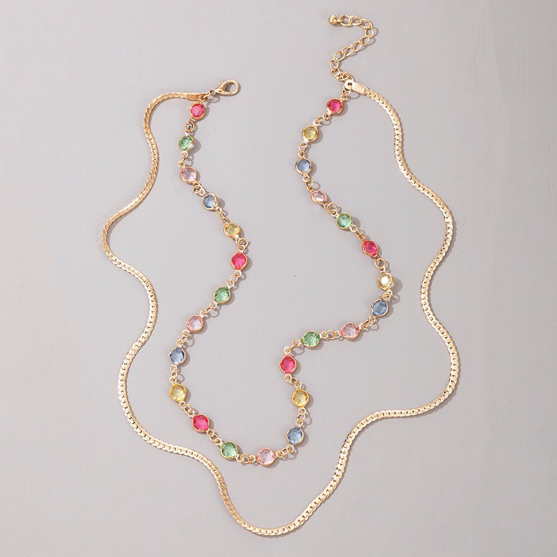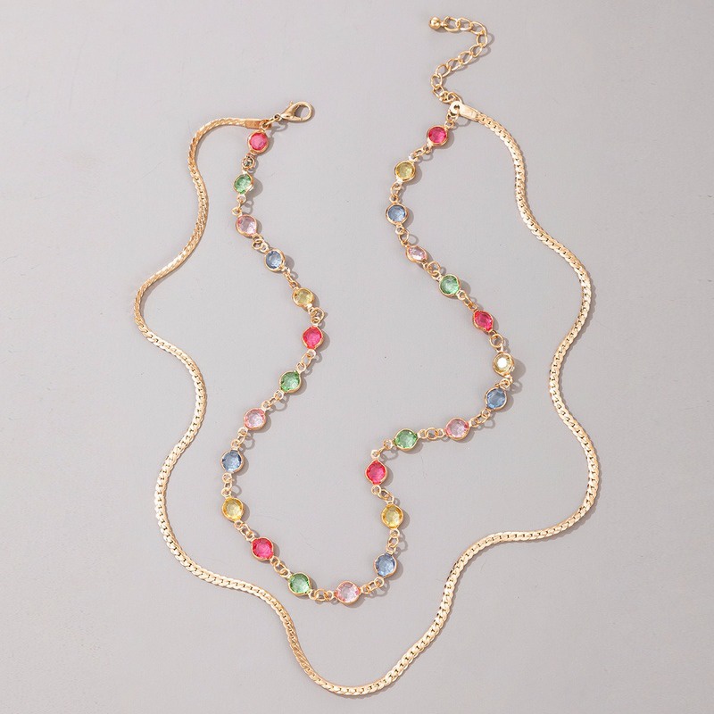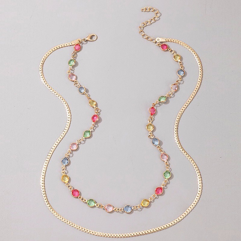 Moda Feminina Colar De Aço Inoxidável De Duas Camadas Rhinestone Acessórios De Jóias/Colarhs